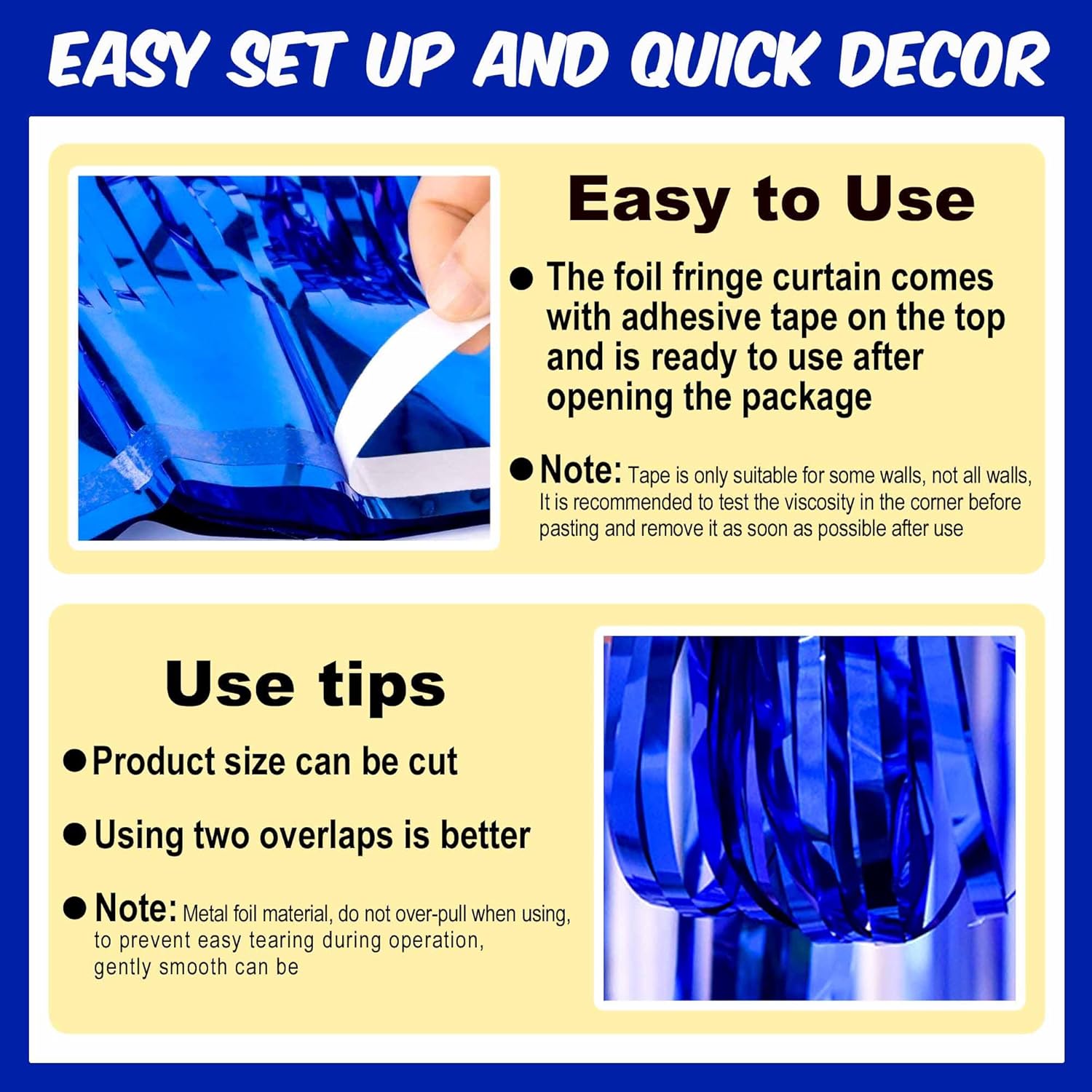 6 Pack 3.28x9.8 Ft Blue Foil Fringe Backdrop Curtains, Metallic Tinsel Streamers Curtains Backdrop for Photo Booth, Hallowmas, Christmas, Graduation, Disco, Celebration Party Decoration