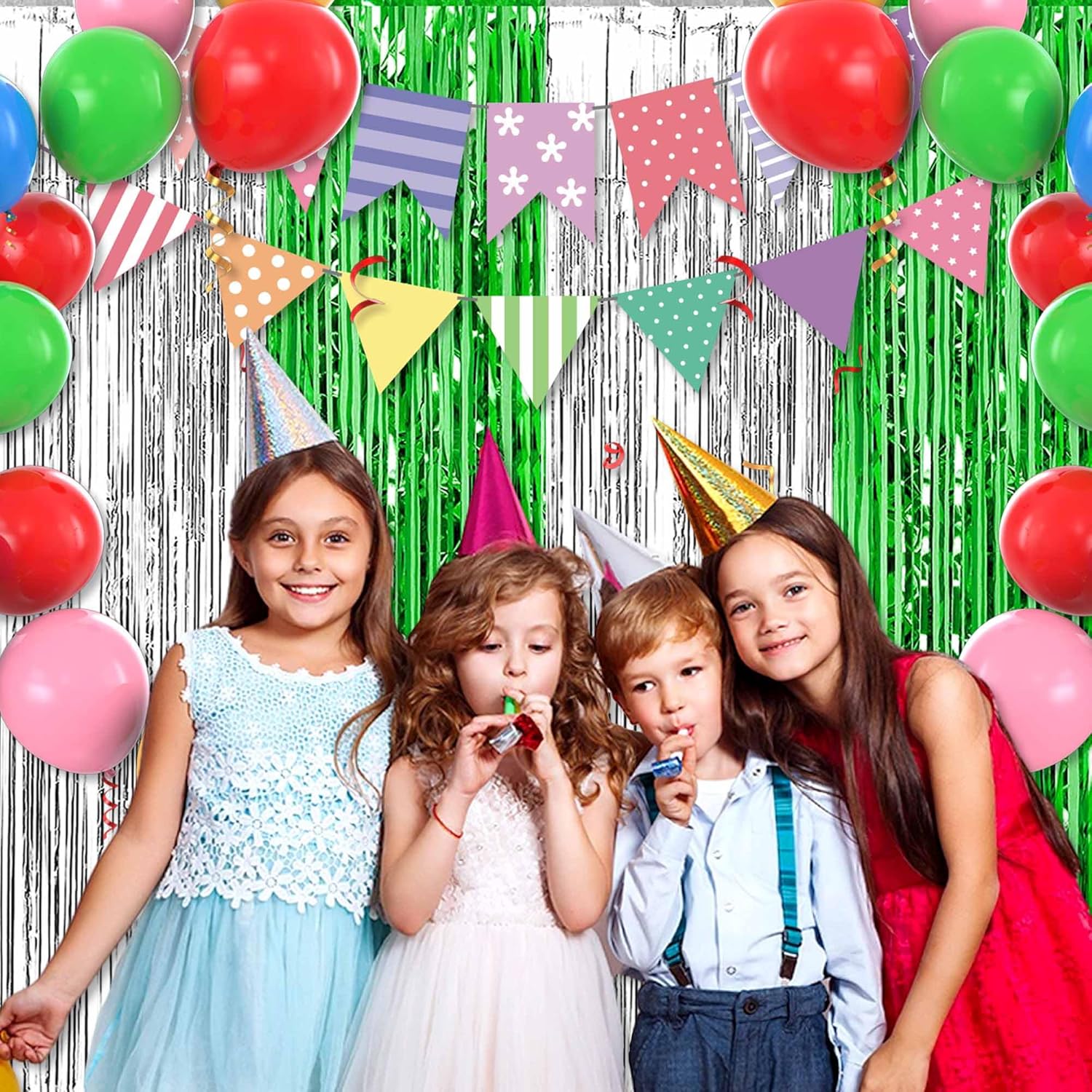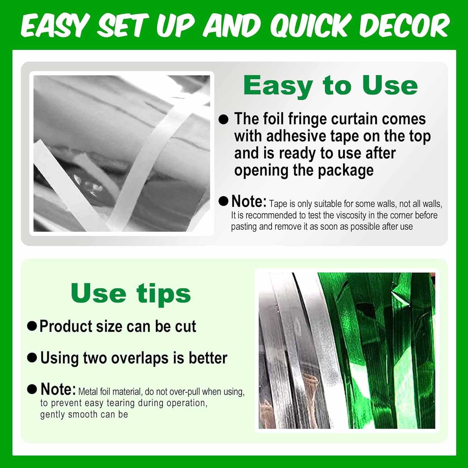 3 Pack Silver Green Foil Fringe Curtains Backdrop, 3.28 x 9.8 Ft Metallic Streamers Tinsel Curtains Background for Photo Booth, Birthday, Halloween, Christmas, Thanksgiving, New Year Party Decorations