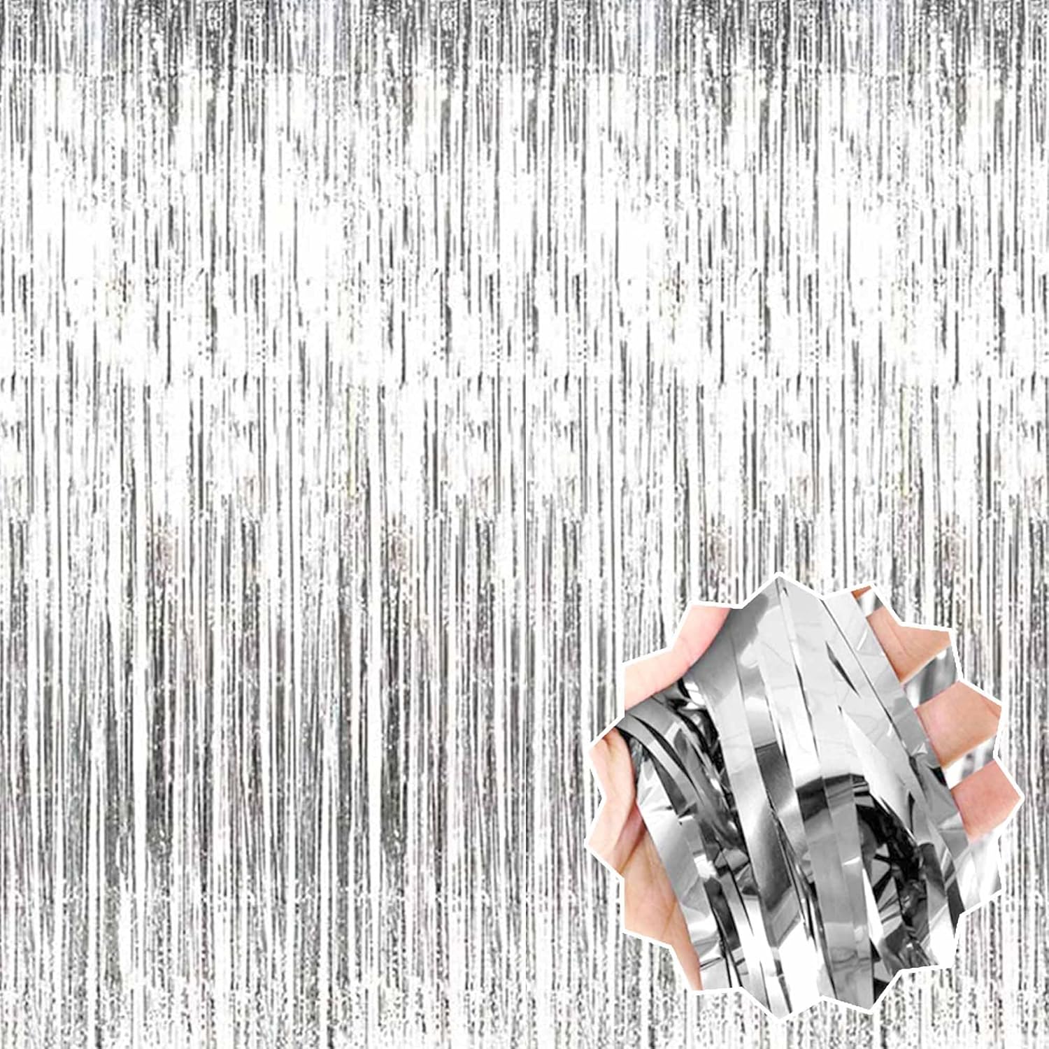 • Package and size: 3 Packs Foil Fringe Streamers Curtain Backdrop. The size is 3.28 x 9.8 feet. It's long, enough to fit any party occasion. Made of metallic foil material, shiny and creating dazzling effects, adding luxury and visual impact to the party