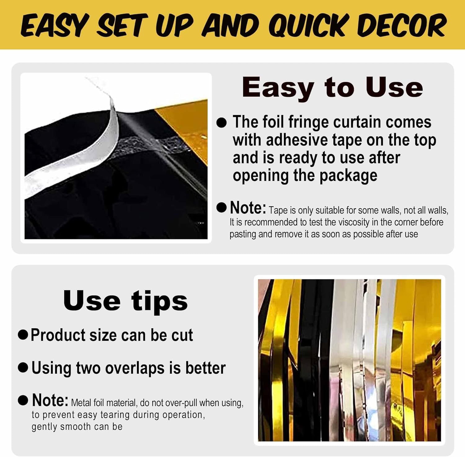 • Easy to Use: The tinsel foil fringe streamers curtain backdrop comes with double sided tape on the top, gently peel plastic strip off and it would be very easy to paste on smooth surfaces such as wall, window, table, door or anywhere you like
