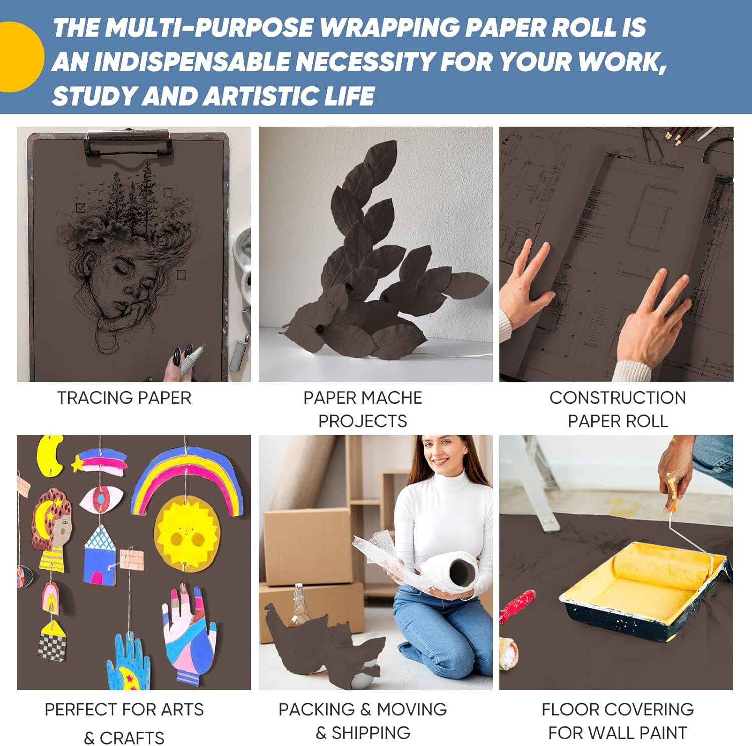 • 【Versatile Kraft Paper rolls】Our kraft paper rolls have a wide application for many things: decor, writing, drawing, sketching, painting, coloring, sketchpad, origami, easel paper, packing paper, poster paper, drafting paper, construction paper, wall art, paper mache paste, fun crafting, art making and more. Whether you are an artist, crafter, designer, DIY enthusiast, parent or teacher, this roll of vellum is a must have necessity in your kit.