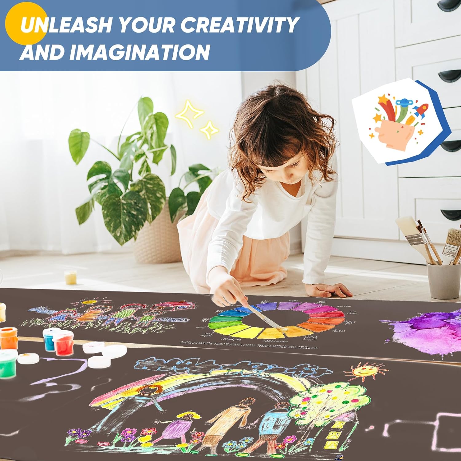 • 【Works with Different Materials】 Our kraft paper is unwaxed and uncoated, which means long-lasting art that won't fade away with time. You can use this craft paper roll with acrylic paints, oil paints, chalk, crayons, markers, gel pens, felt tip pens, fine point pens, watercolors, colored pencils, finger paints and tempera, and there is no smearing or bleeding to protect your table from the different art mediums.