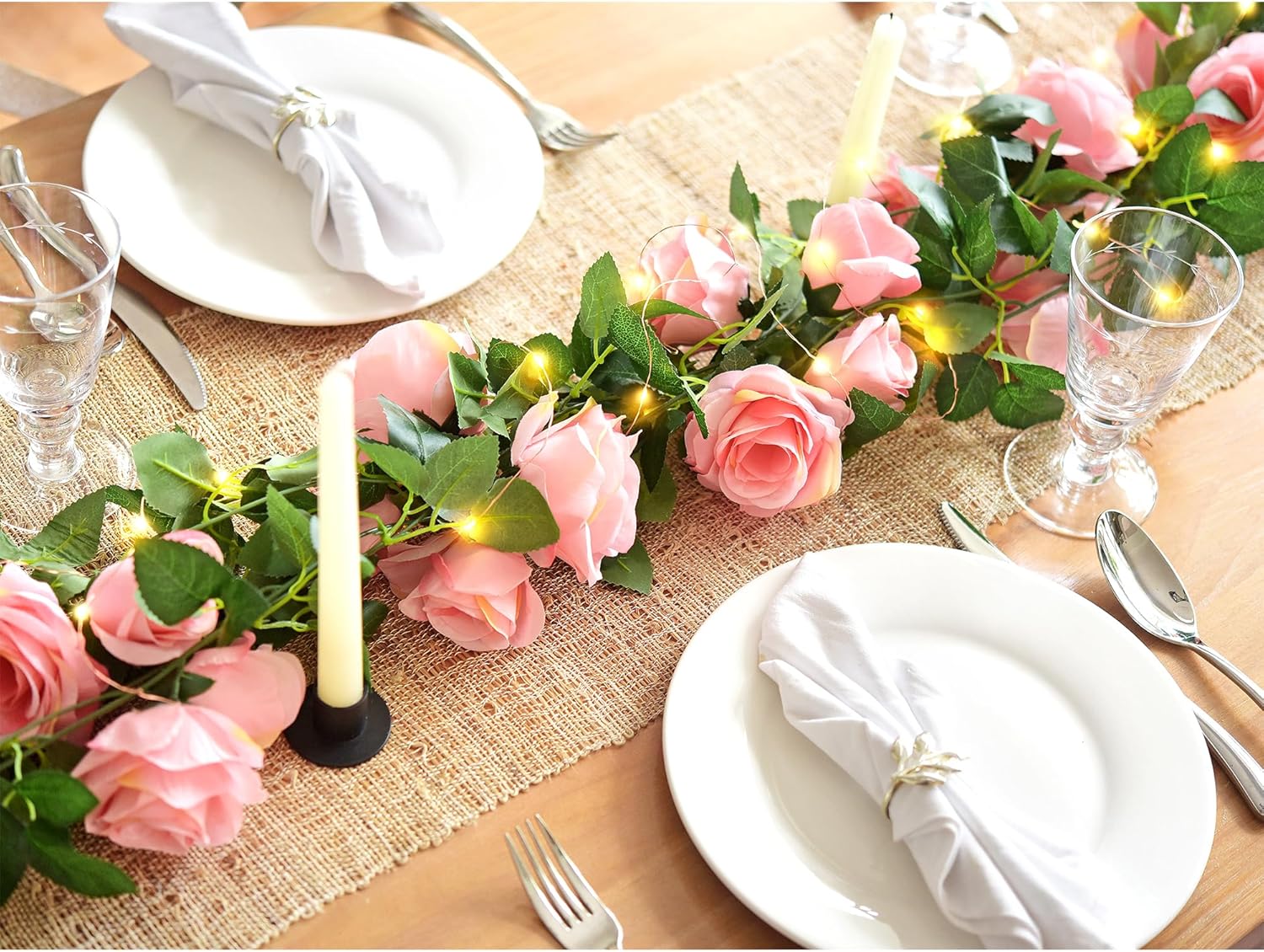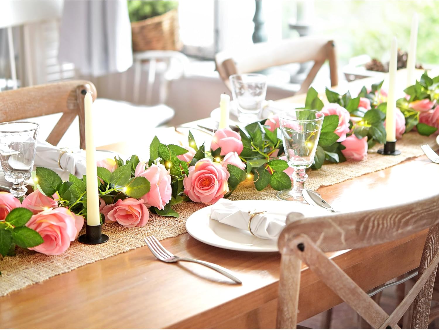 • A vision of whimsical beauty: Create a whimsical wonderland with these pink rose garlands, draped with 66 feet of warm white string lights. Whether you use them as vines along staircases or create a magical canopy over a headboard, the possibilities are endless. Ideal for coquette room decor, weddings, or garden party decorations.