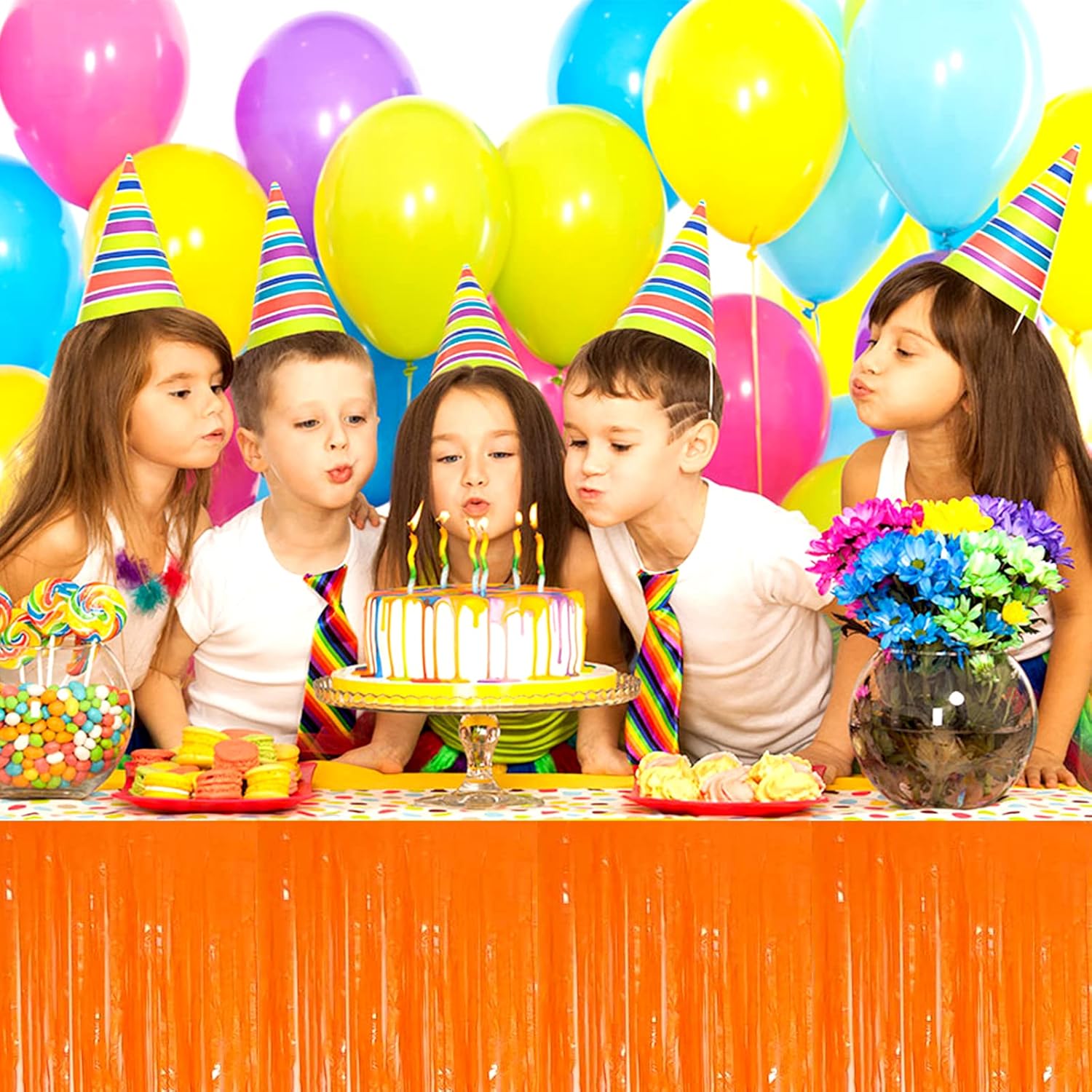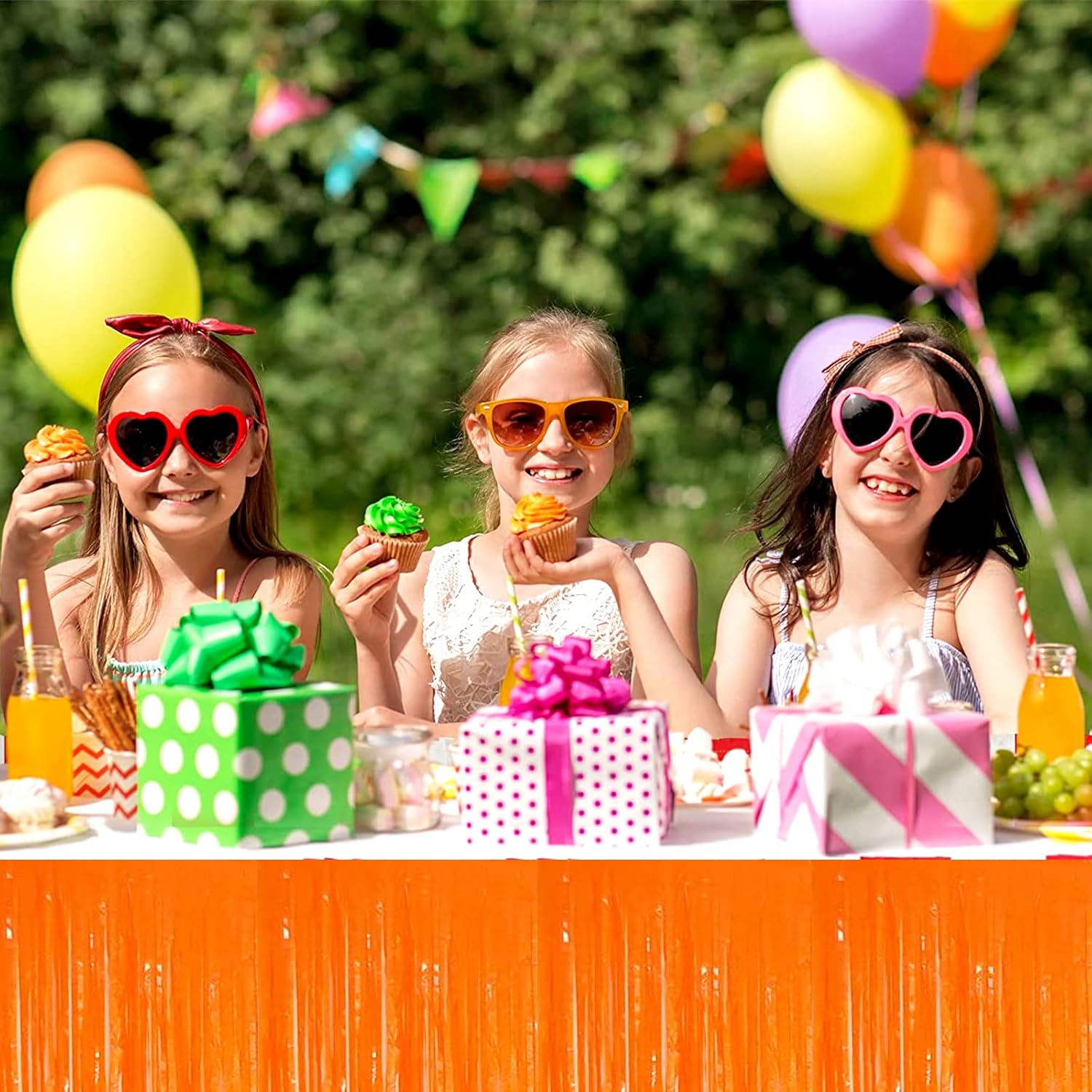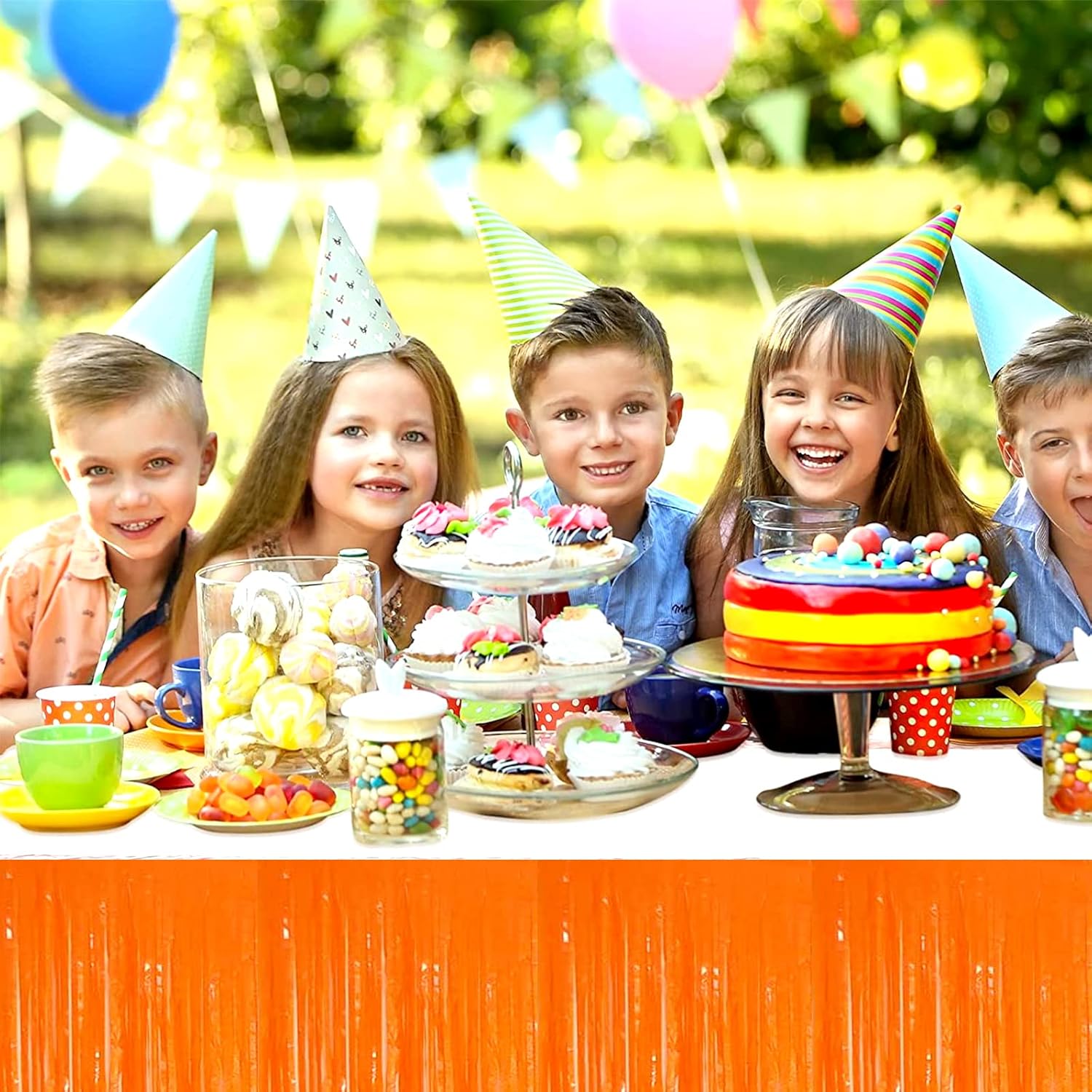 4 Pack 29x108 Inch Metallic Foil Fringe Tinsel Table Skirts for Rectangle Tables Streamer Backdrop for Wedding, Birthday, Parade Floats, Christmas, Halloween Party Decoration(New Orange)