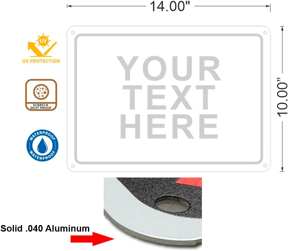 • Customizable Design: Create your own unique and original sign with long-lasting metal that wont rust or fade. Add your own text, to make the perfect custom sign for business, office, outdoor use.