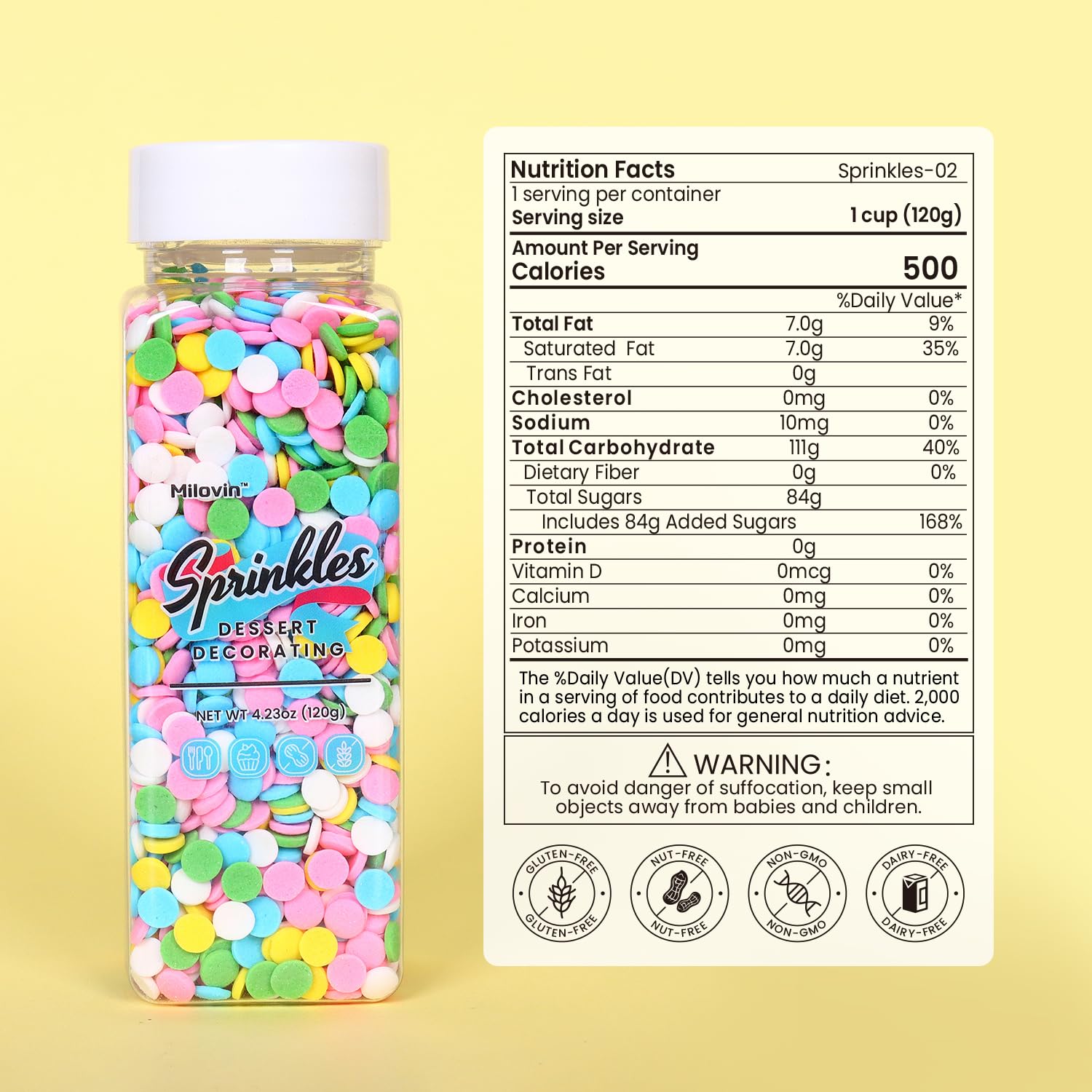 • Pastel Sprinkles for Cake Decorating: A bottle of edible pastel confetti sprinkles(120g/4.23oz), whether it's cakes, cupcakes, cookies, ice cream, cake pops, brownies, or any dessert you can dream of; our round sprinkles are your go-to for that extra dash of cheer.