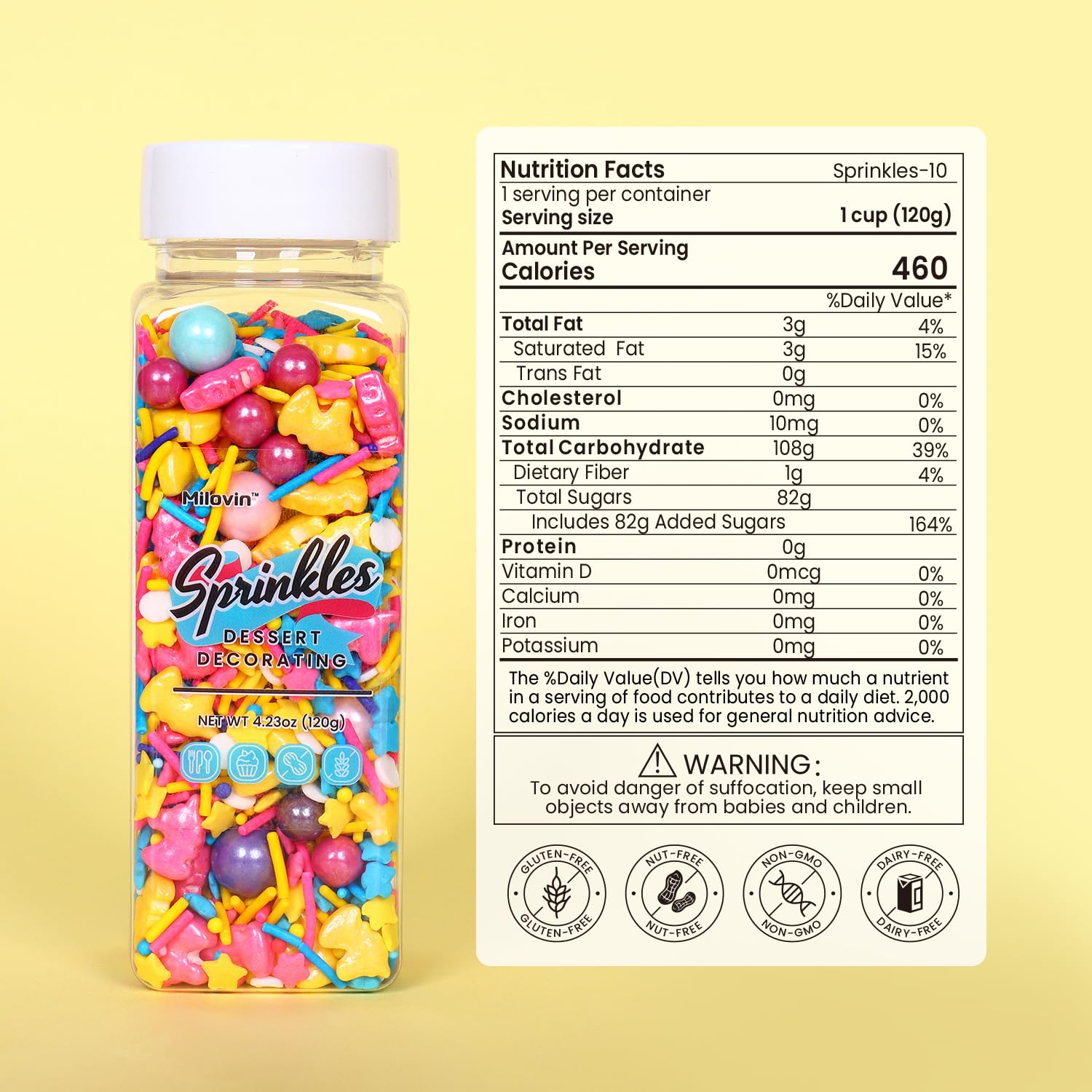 • Edible Unicorn Sprinkles for Cake Decorating: A bottle of unicorn sprinkles(120g/4.23oz), whether it's cakes, cupcakes, cookies, ice cream, cake pops, brownies, or any dessert you can dream of; our unicorn sprinkles are your go-to for that extra dash of cheer.