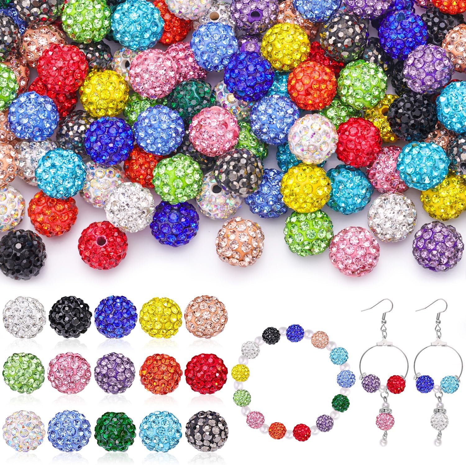 150 pcs 10mm Rhinestone Beads for Jewelry Making, 15 Mixed Colors Shiny Round Shamballa Disco Beads, Sparkle Crystal Clay Christmas for Bracelet Baseball Necklace Earring Crafting and DIY