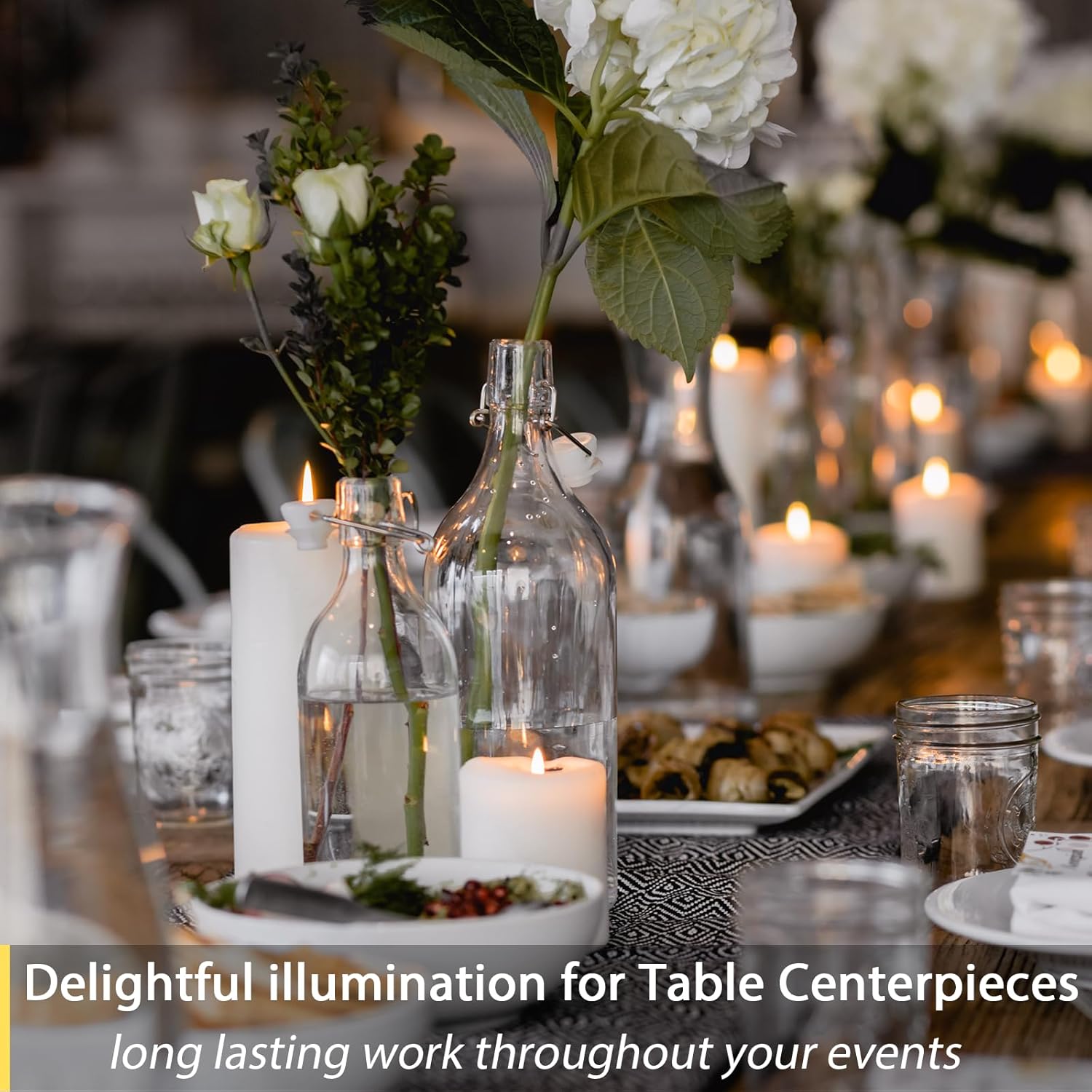• Widely Use: Battery operated candles can fit into most votive holders, lanterns and wall sconces, including but not limited to candlelit dinners or romantic settings. Ideal for home decor, wedding centerpieces, parties, Valentine's Day, Easter, Halloween, and Christmas.