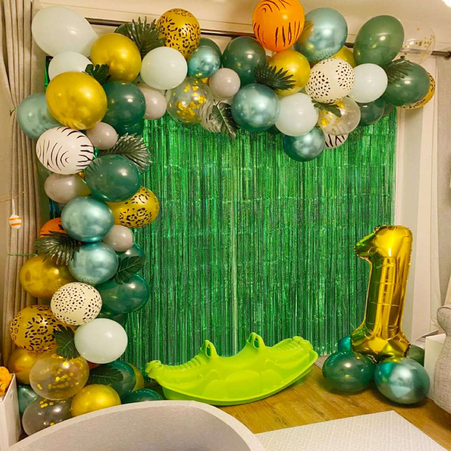 • 🎉SAFE & SHINY MATERIAL- This Glitter green tinsel backdrop is made of high-quality shiny tinsel, non-toxic, odorless, and non-fading, safe for families with children and pets. Just transform your home into a shining streamers happy birthday decorations, and enjoy the party.