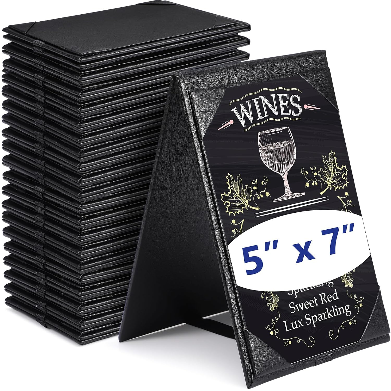 Gerrii Leatherette Table Tents Black PU Leather Menu Covers Bulk Double Sided Frame Sign Holders 2 Side Drink Dessert Menu Folders for Restaurant Coffee Cafe Bar Wedding Supplies(20 Pack,5 x 7 Inch)