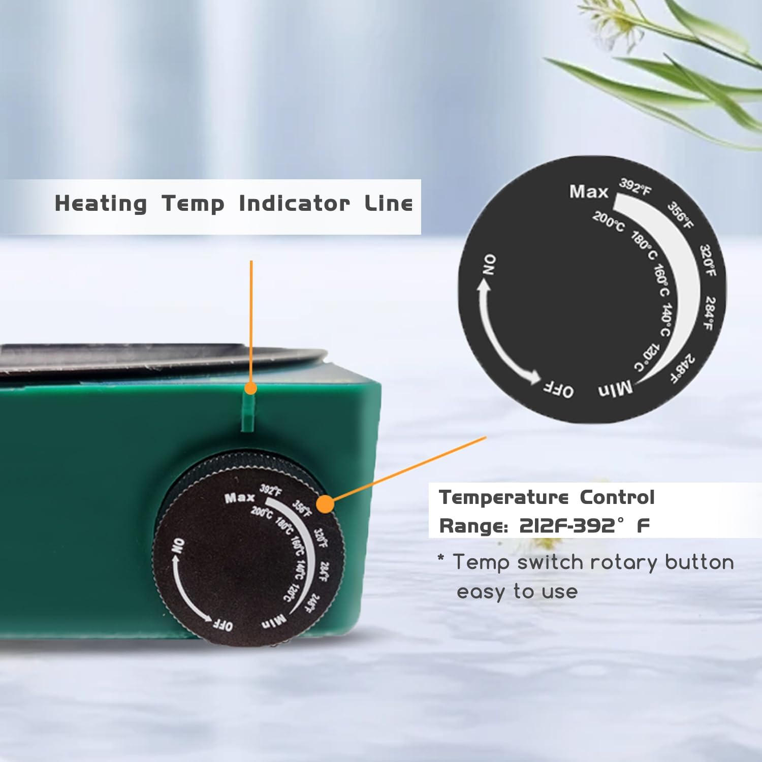 • Temperature control: Our glue melting pot can be set heating temp from 212°F to 392°F by using knob. You can melt all types of glue with our pot, such as Keratin glue yellow, Italian glue white and yellow Keratin Bond glue sticks.