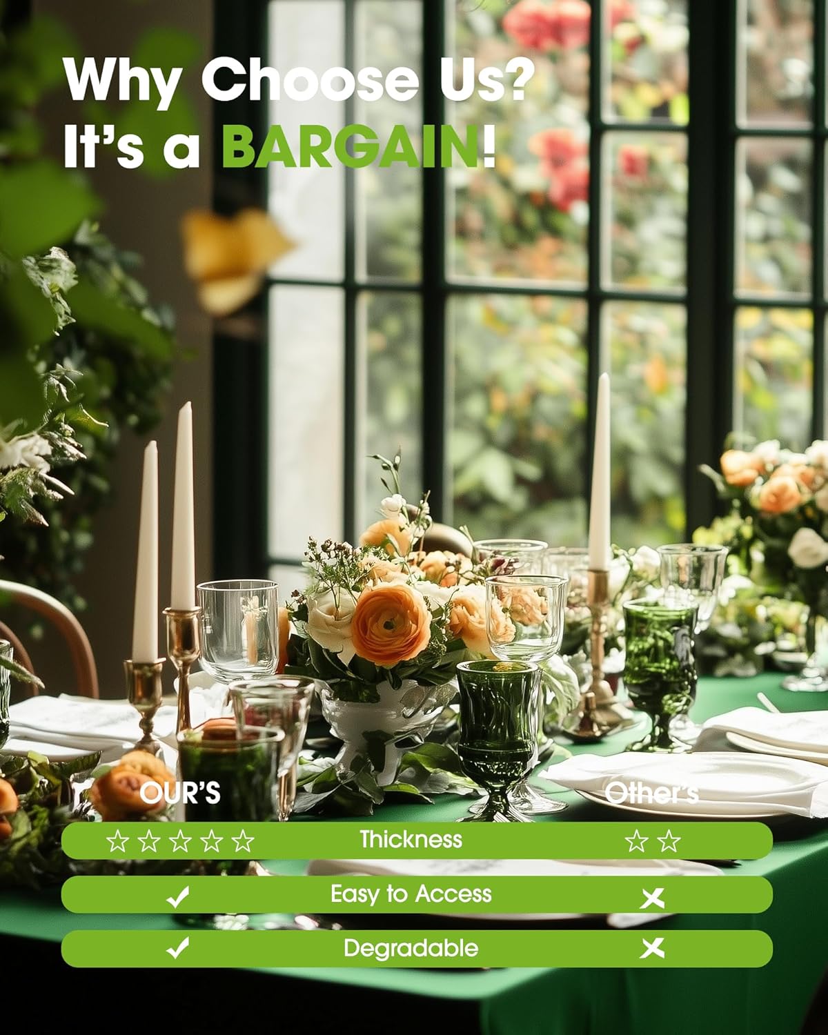 • FOR ALL OCCASIONS: With the universal size and multiple color options, our disposable table cloths are widely applicable to kinds of events, parties, church functions, work events, one-time use, and even practical everyday use.