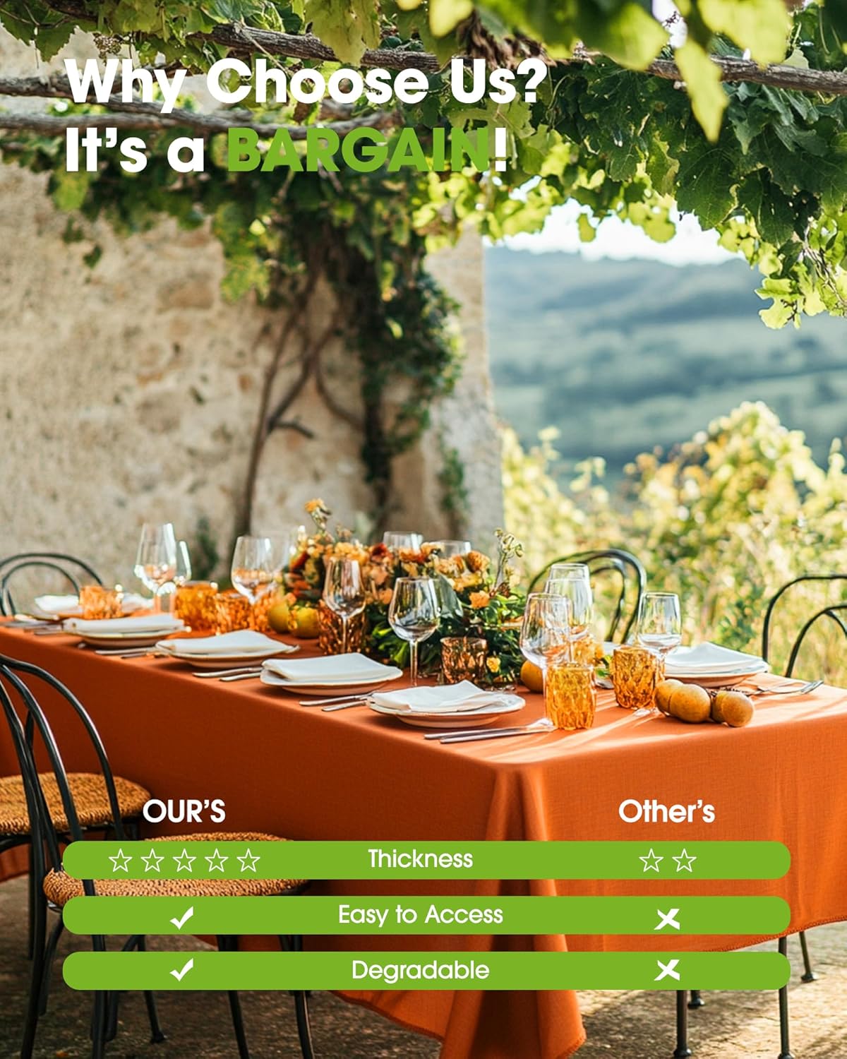 • FOR ALL OCCASIONS: With the universal size and multiple color options, our disposable table cloths are widely applicable to kinds of events, parties, church functions, work events, one-time use, and even practical everyday use.