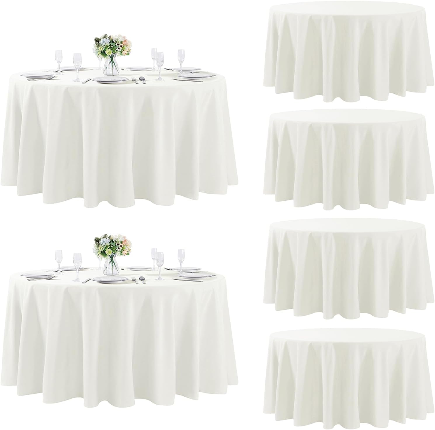 Fokitut 6 Pack Round Tablecloth, 108 Inch, Stain Resistant and Wrinkle Polyester Table Cloth, Fabric Table Cover for Kitchen Dining, Wedding, Party, Holiday Dinner-Ivory