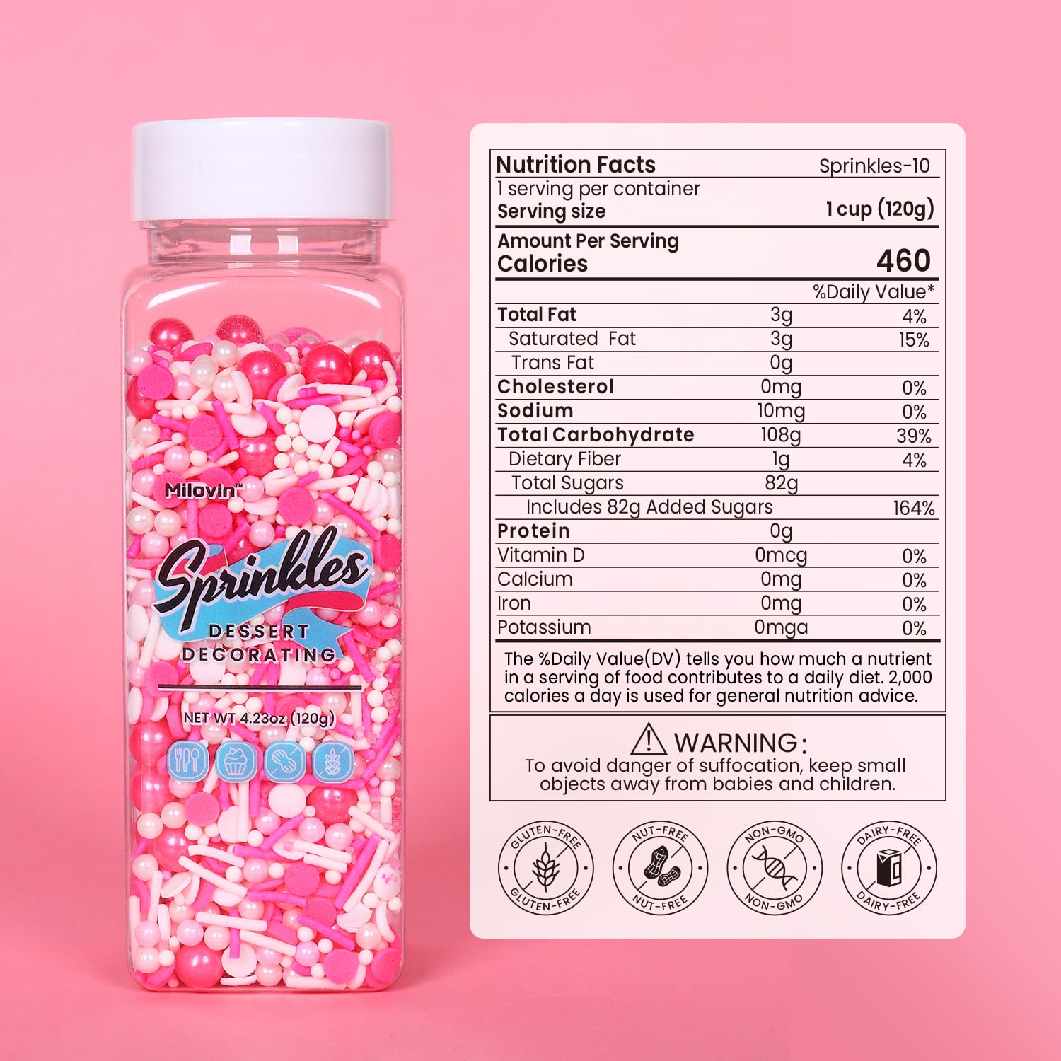 • Edible Pink Sprinkles for Cake Decorating: A bottle of pink sprinkles mixes(120g/4.23oz), whether it's cakes, cupcakes, cookies, ice cream, cake pops, brownies, or any dessert you can dream of; our edible pink sprinkles are your go-to for that extra dash of cheer.