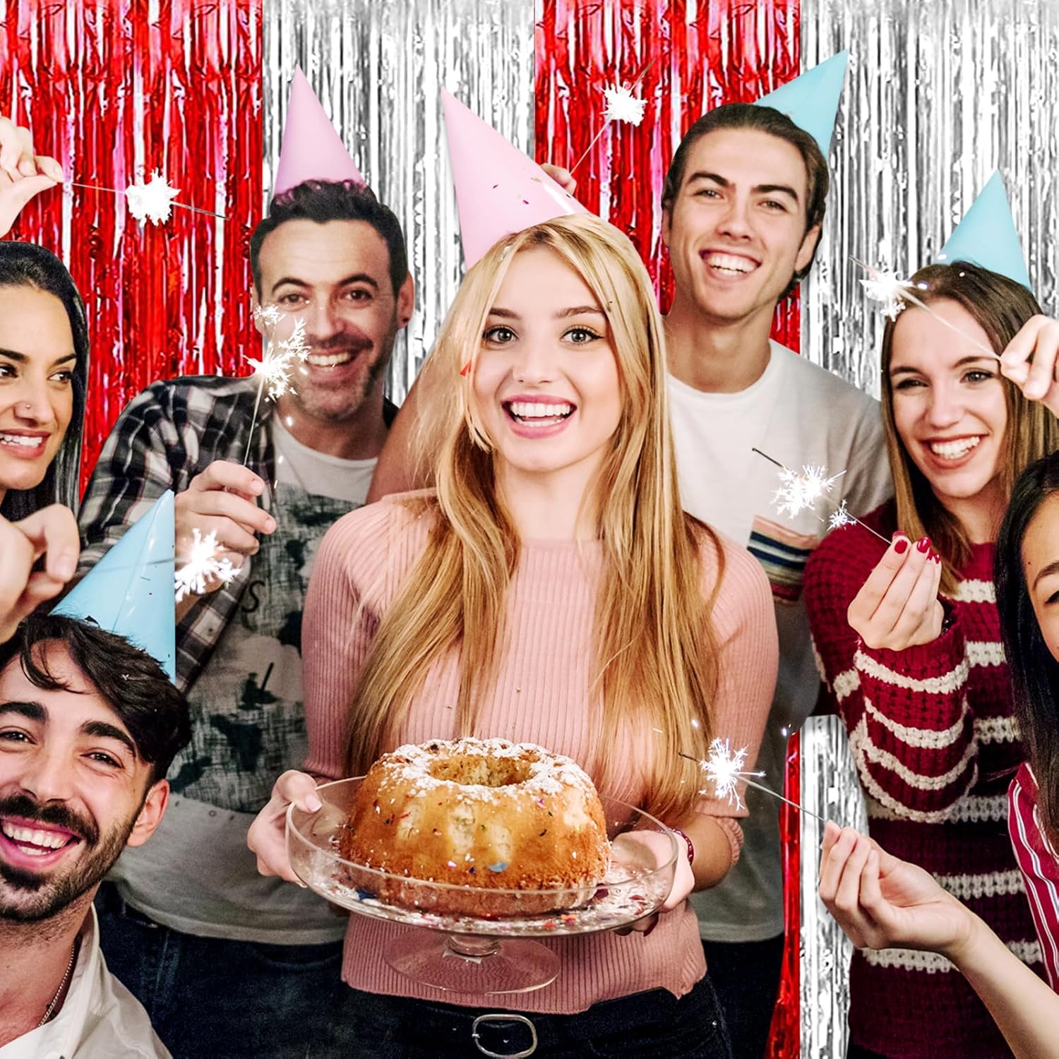 3 Pack Red Silver Foil Fringe Curtain Backdrop, 3.28Ft x 8.2Ft Metallic Tinsel Foil Fringe Streamer Curtains for Photo Booth, Teachers' Day, Halloween, Birthday, Wedding Party Decorations