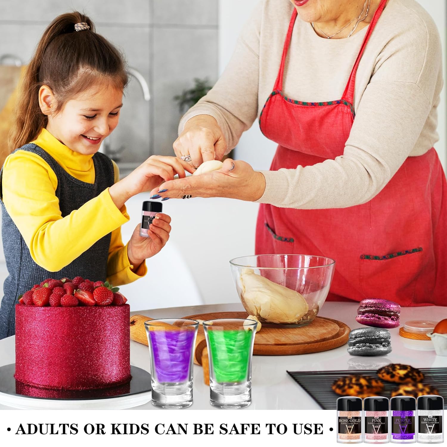 • SAFE AND ALLERGEN-FREE - Our food-grade luster dust is vegan and allergen-free, containing no gluten, nuts, or dairy products, making it safe for use by everyone, regardless of dietary restrictions or food allergies. Kosher, Halal, Haccp and Vegan Certified. It does not contain sugar or flavors, ensuring its will not alter the taste or texture of food.