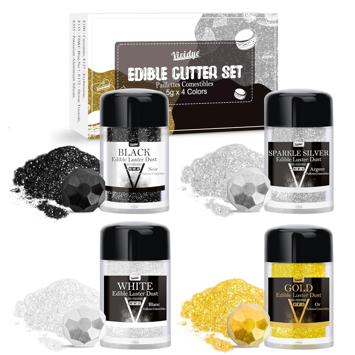 • 100% SATISFACTION GUARANTEE - Whether you're a beginner or a pro, you will enjoy creating dazzling desserts with our edible glitter. Bringing endless sparkle, glamour, and excitement to your drink, foods and night out! Feel free to email us if any doubts or concerns.