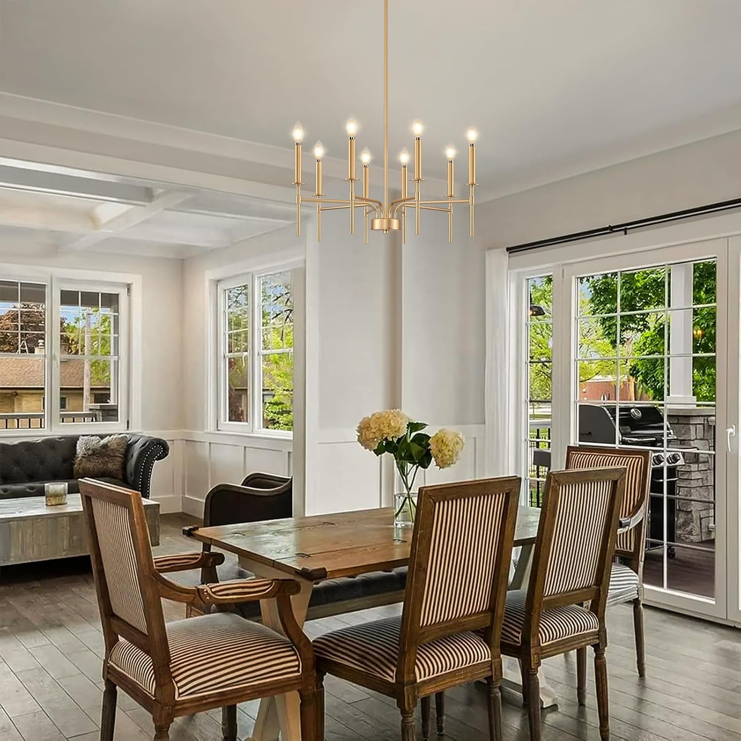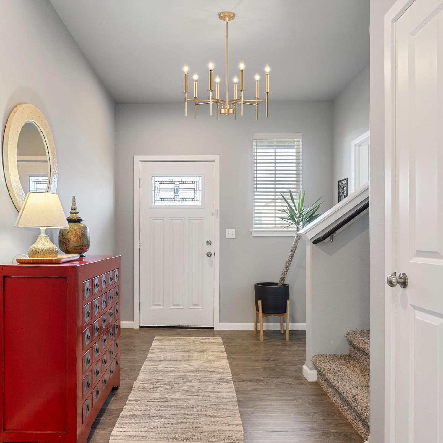 • Classic Farmhouse Chandelier: The ZUYURT 8-light gold chandelier merges classic candle-style elegance with a sleek champagne gold finish. Crafted from premium iron, this sturdy and stylish gold farmhouse chandelier is ideal for a dining room chandelier, or a centerpiece in your entryway modern chandelier for foyer