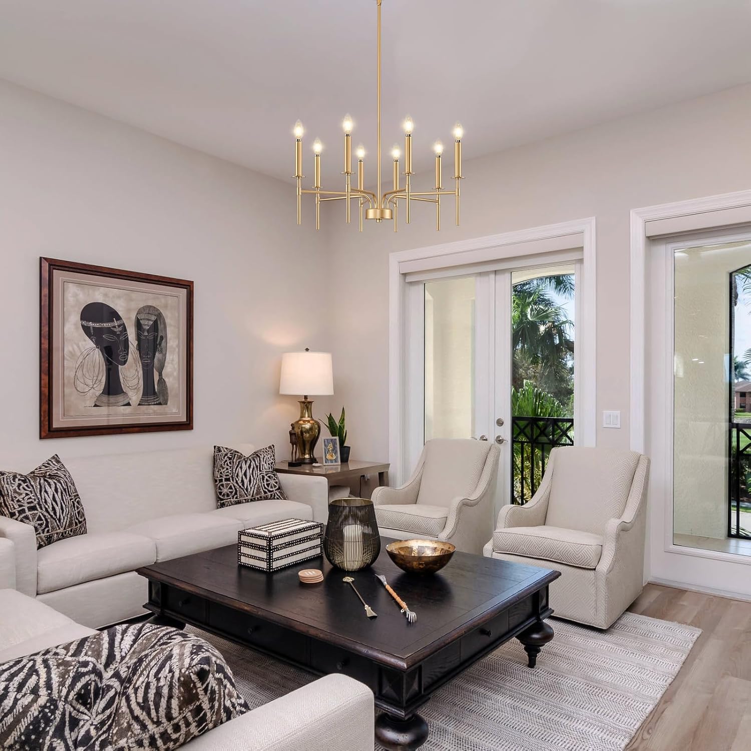 • Dimmable and E12 Bulb Compatibility: With 8 E12 candelabra sockets, this gold chandelier is compatible with various E12 bulbs (incandescent, LED, CFL, and halogen, 40W MAX / bulb), offering dimmable functionality to create the perfect ambiance. This gold matte chandelier allows for flexible lighting control, making it suitable as a gold chandeliers for dining room, or master bedroom chandelier (NOTE: bulbs and dimmer are NOT included)