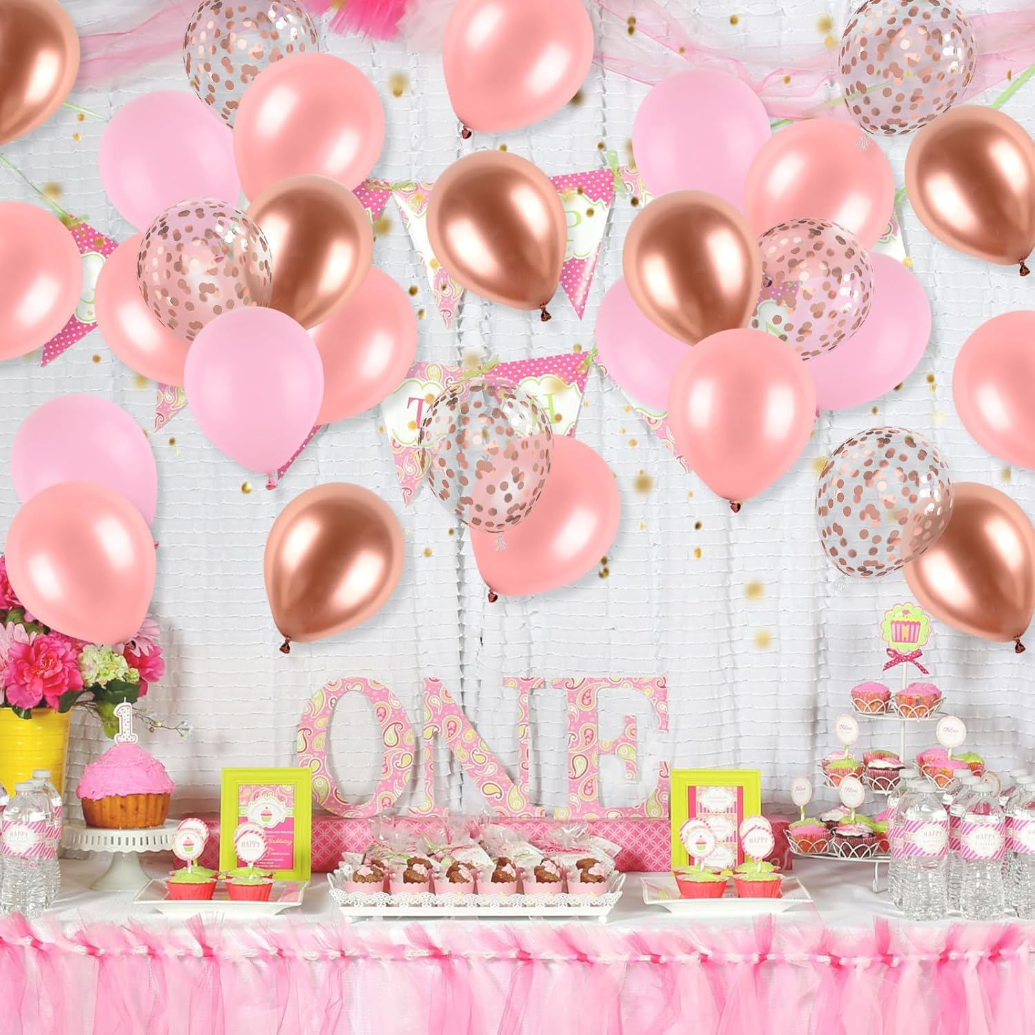 Rose Gold and Pink Balloons, Blush Pink Metallic Rose Gold Balloons Retro Pink Pastel Pink Rose Gold Confetti Balloons For Girls Birthday Party Boho Wedding Anniversary Party Decorations