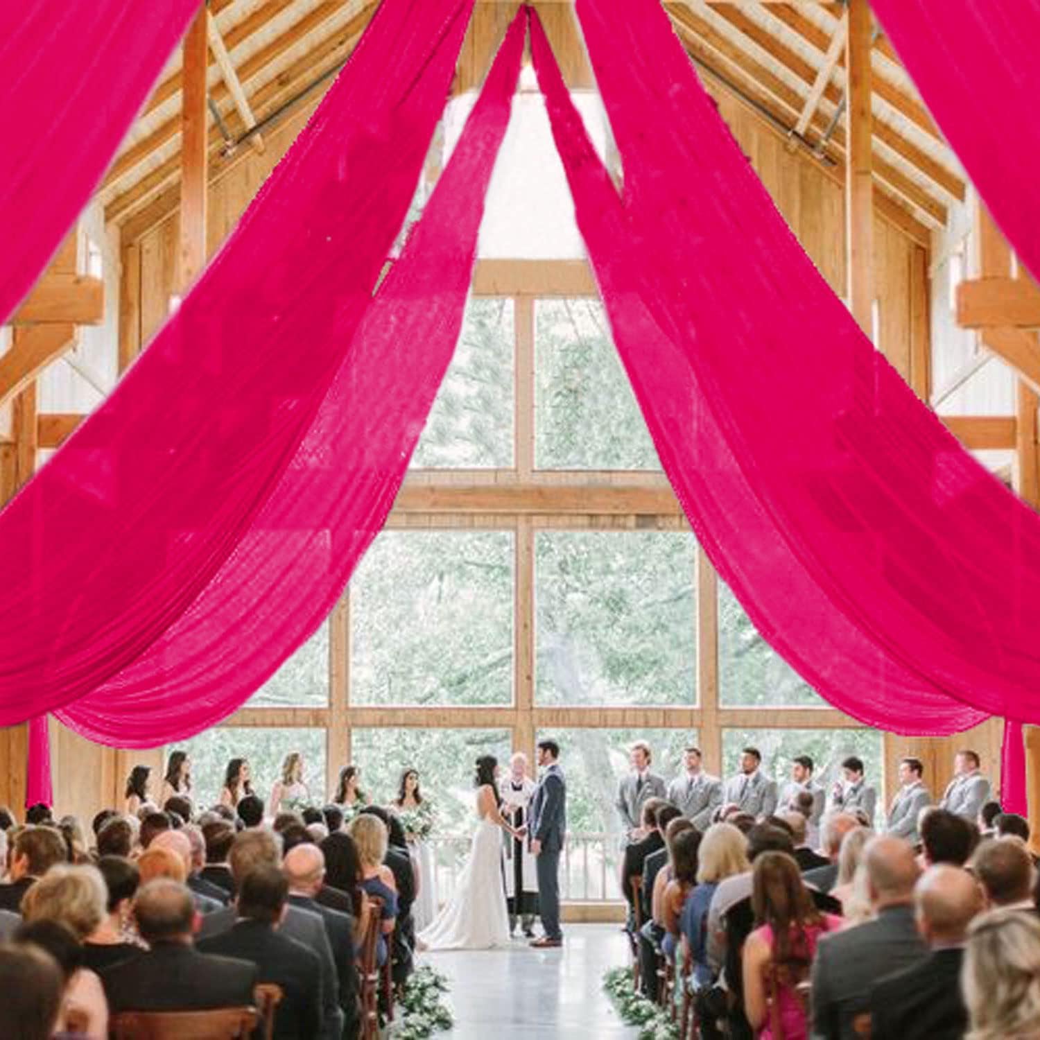 • ⭐Size & Color - Wedding Drapes Ceiling Decoration: Our hot pink ceiling drapery contains 2 panels. Each panel is 5FT width x20FT length. Wedding arch drapes is long enough creating a great eye catching detail in wedding party events decor.