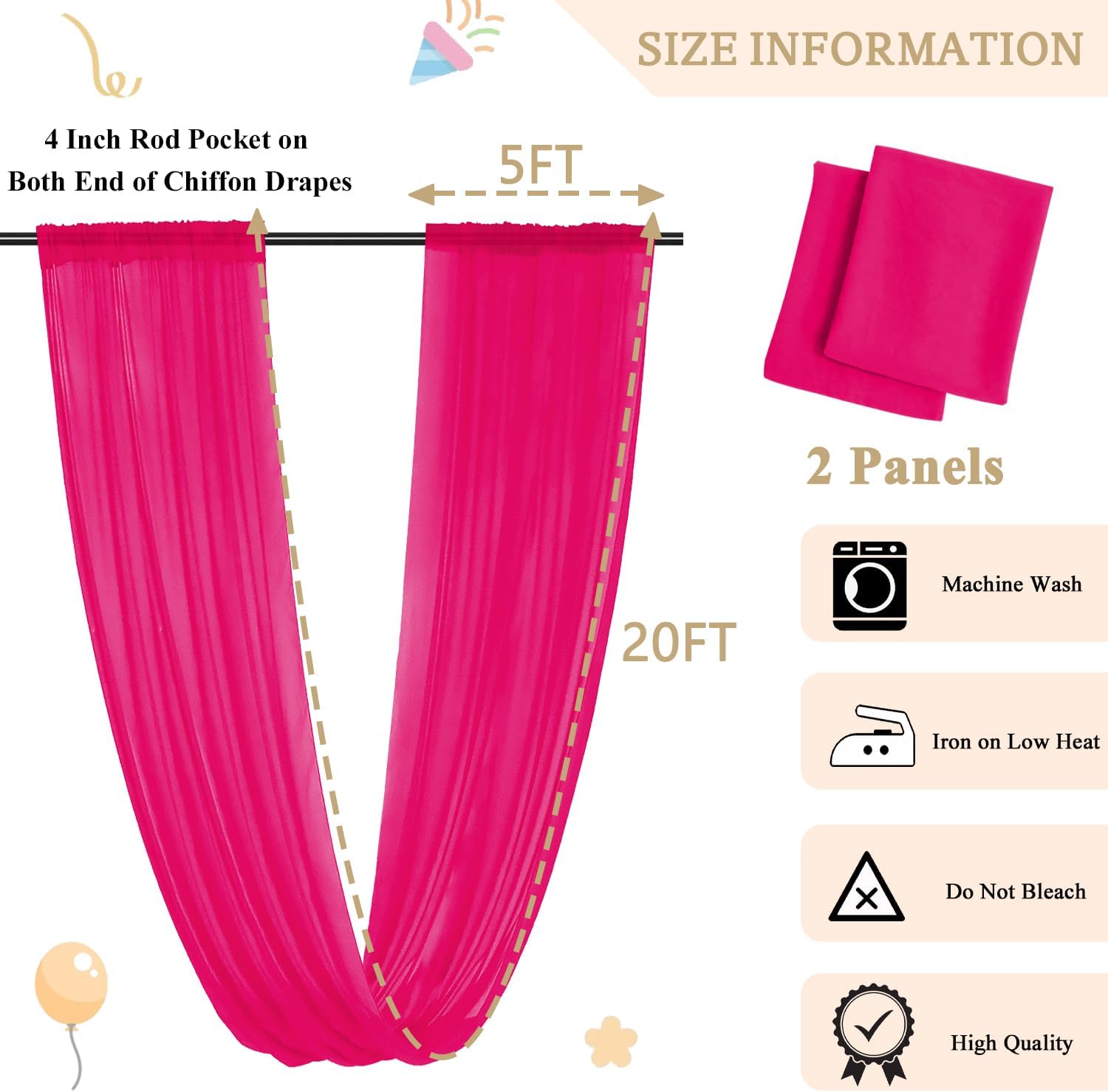 MODFUNS Wedding Ceiling Drapes Hot Pink Ceiling Drapery 5x20ft 2 Panels Sheer Arch Drapery Chiffon Curtain Drapes Tulle Ceiling Fabric Draping Fabric Party Stage Prom Ceremony Decor