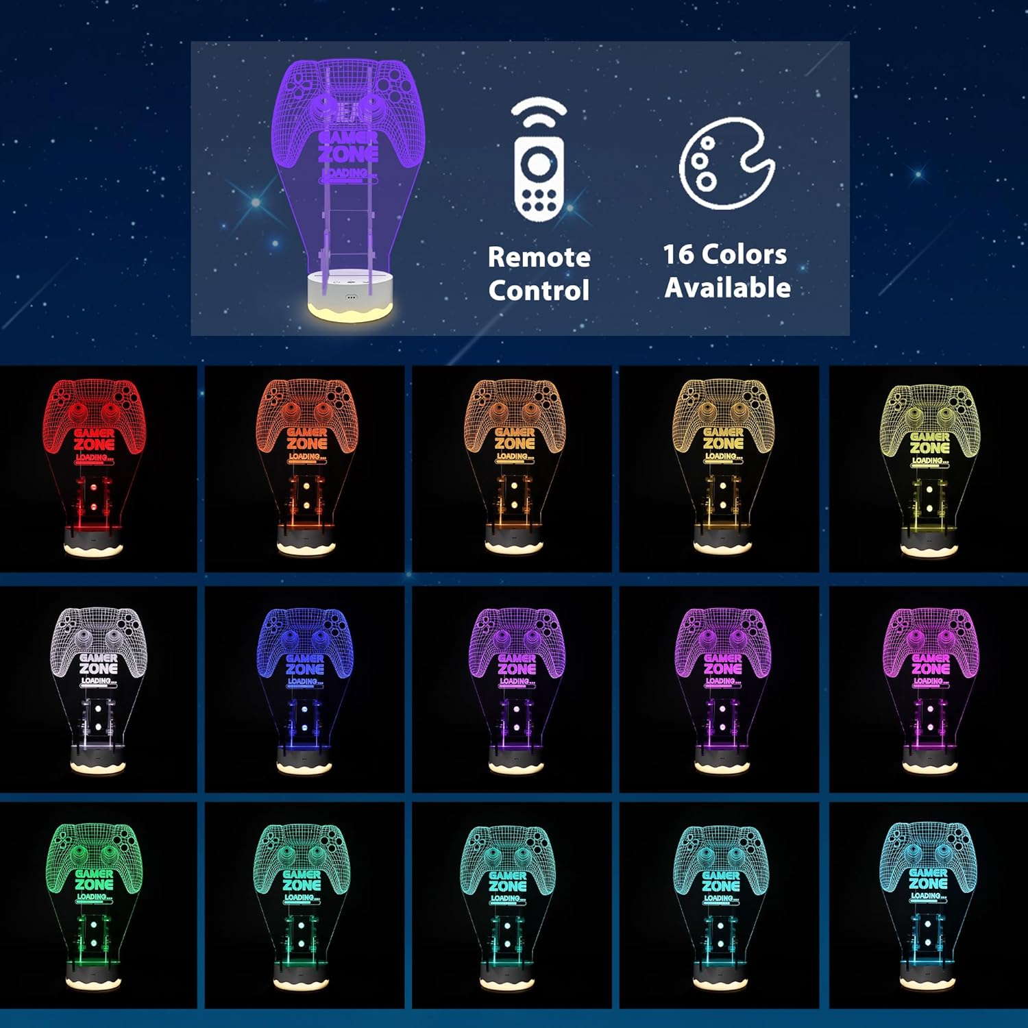 • CONVENIENT AND SAFE: The 3D gamepad night light can be powered via USB or 3 x AAA batteries (not included). Featuring a high-quality LED light source, it is soft, uniform, non-dazzling, non-flickering, dimmable, and harmless to children's eyes—providing a sweet and warm night