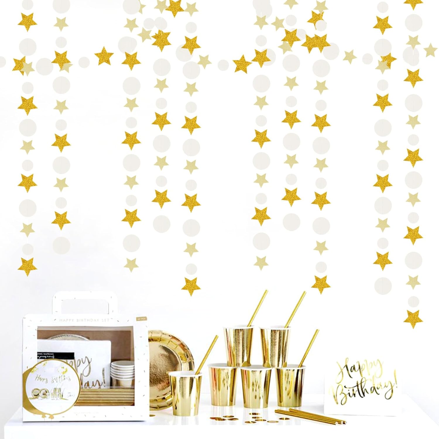 • 【Material】The material is eco-friendly gold,light gold,ivory paper.You can cut to any length you want if you need shorter length.The dots and stars are cut very neatly.