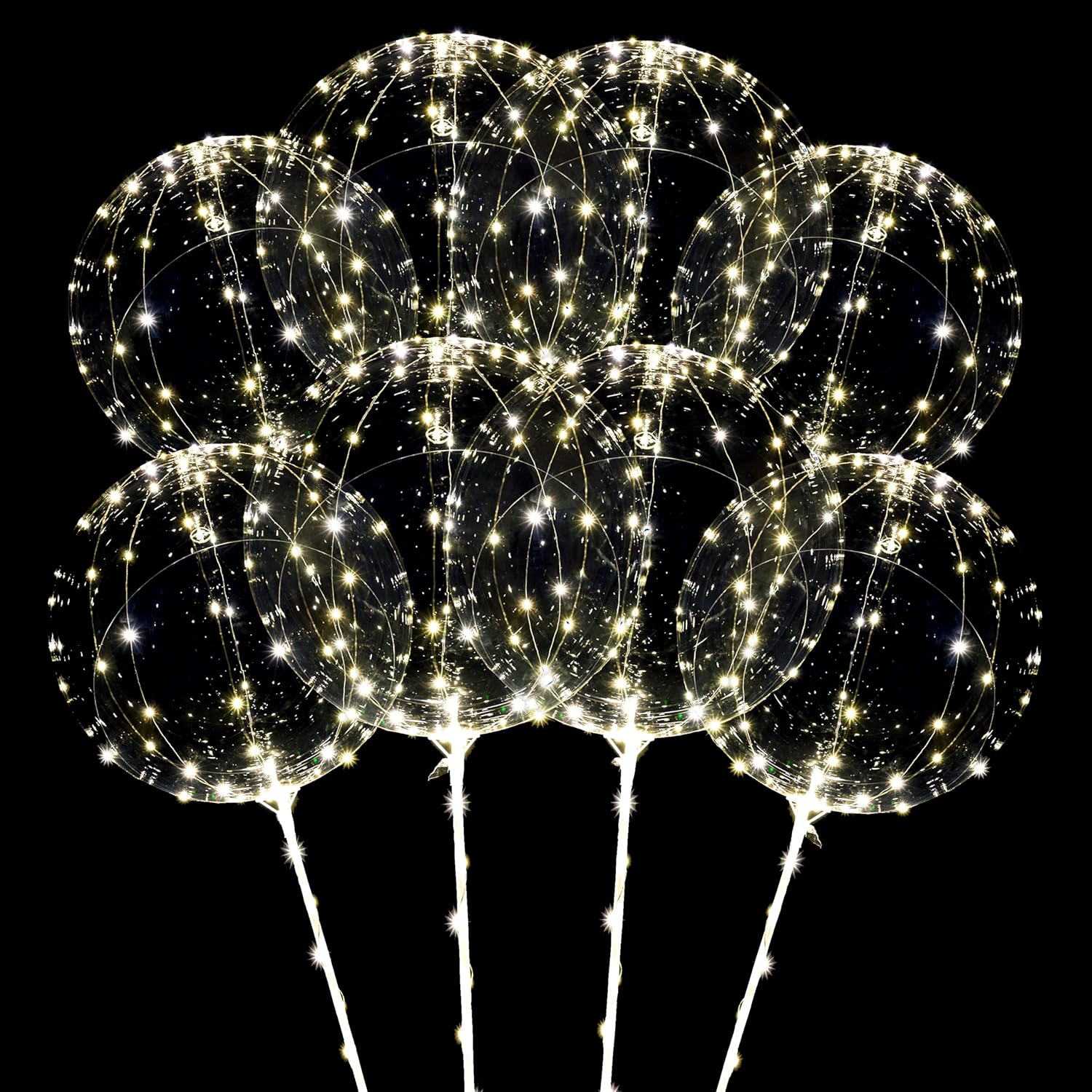 10 Pack Big Light Up BOBO Led Balloons with Sticks - Clear Balloons with Lights, Glow in the Dark, Flicker in the Daylight - Perfect Glow Party Supplies for Birthday, Wedding, Graduation, Warm White