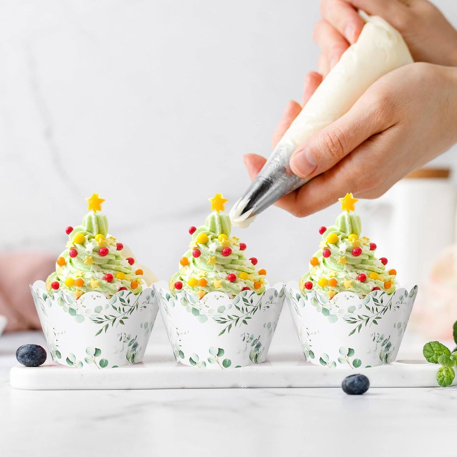 • Extensive Package and Appealing Design: this pack of 100 cupcake wrappers with 2 distinct styles, featuring a charming eucalyptus leaf pattern, these wrappers combine functionality with aesthetic appeal, meeting your daily baking needs while adding a sophisticated touch to your cupcake presentation