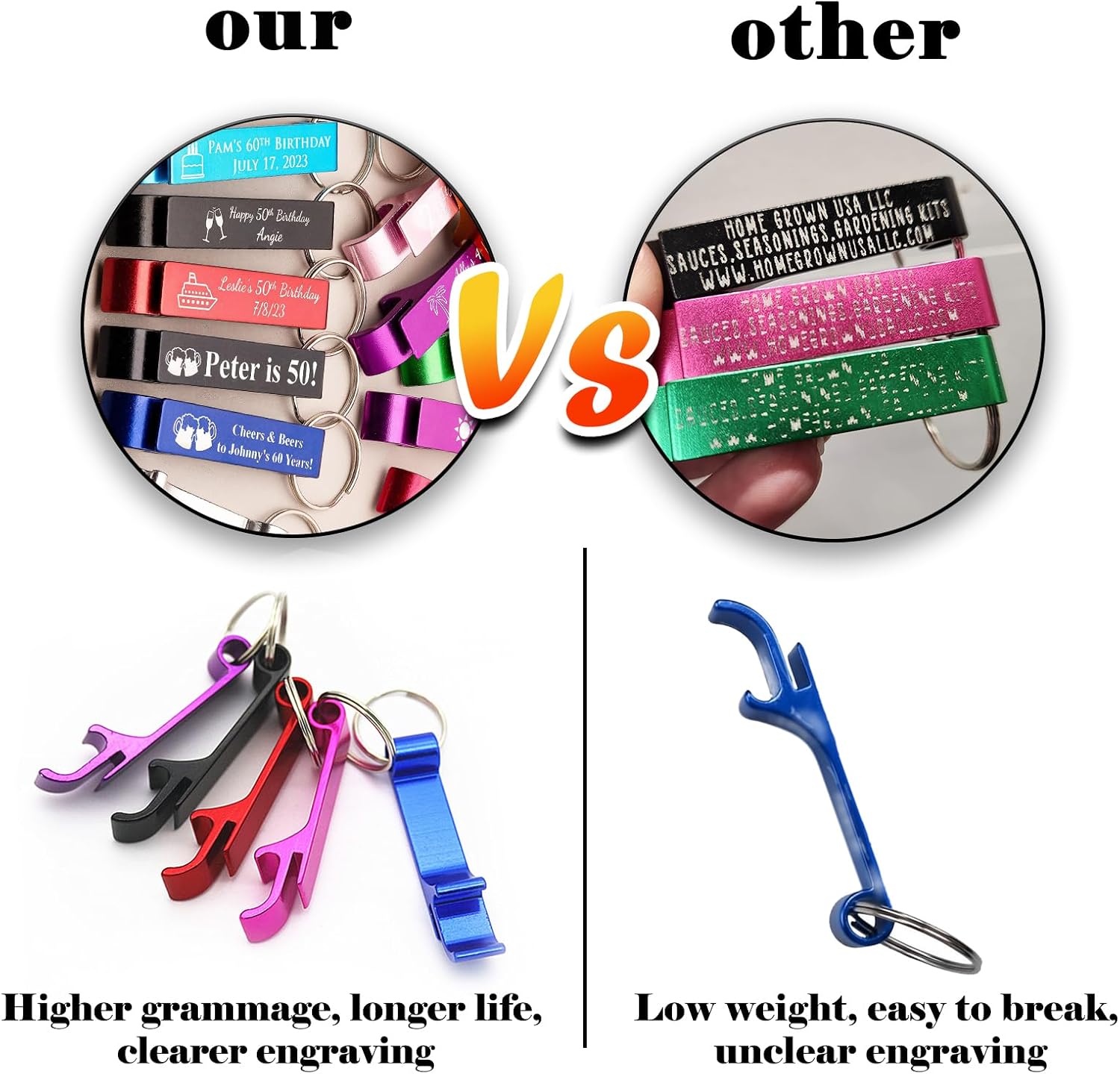 50pcs Personalized Bottle Opener Keychain Bulk Custom Engraved Text/Logo Keychains Customized Beer Bottle Opener for Bar, Graduation,Party,Wedding Favors Gift (50pcs)