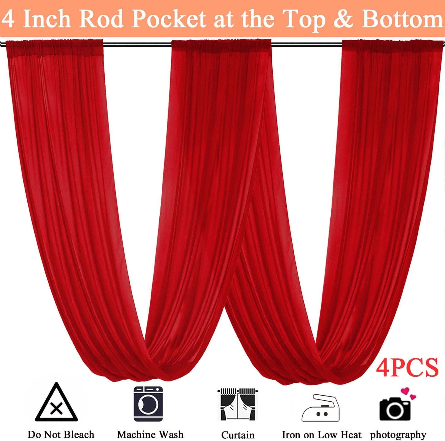 FUHSY Red Ceiling Drapes for Wedding Ceiling Drapes 5x20 FT 4 Panels Ceiling Draping Fabric Wedding Arch Drapery Fabric Sheer Backdrop Curtain Voile Drapes for Ceremony Outdoor Ceiling Decorations