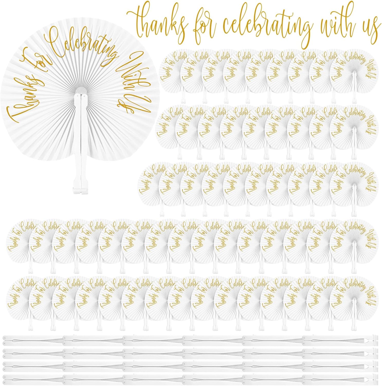 • Generous Pack of 120: our package includes 120 pieces of wedding white folding fans, each elegantly printed with the heartwarming message 'Thanks for Celebrating with Us' and comes with a gift bag; wedding fans are suitable for distributing among guests at wedding parties, bridal showers, or summer parties, adding a sweet atmosphere to your special events