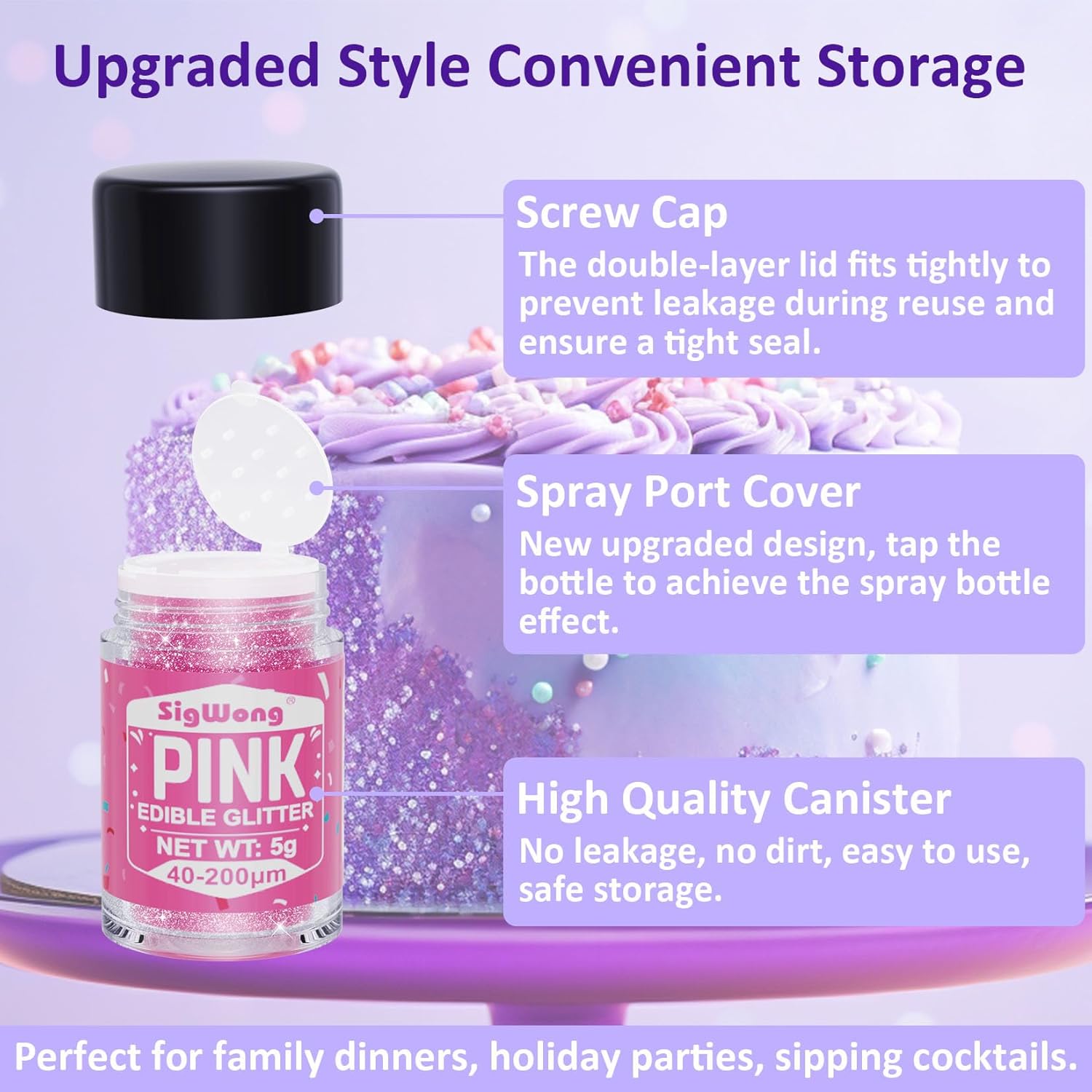 • EASY TO USE - The unique cap design of edible glitter allows you to control the amount of edible glitter well, it can be sprinkled directly on the surface of cakes, cookies and other food products, or mixed directly with cocktails, beverages, etc. for a sparkling and glamorous effect and gorgeous shine.