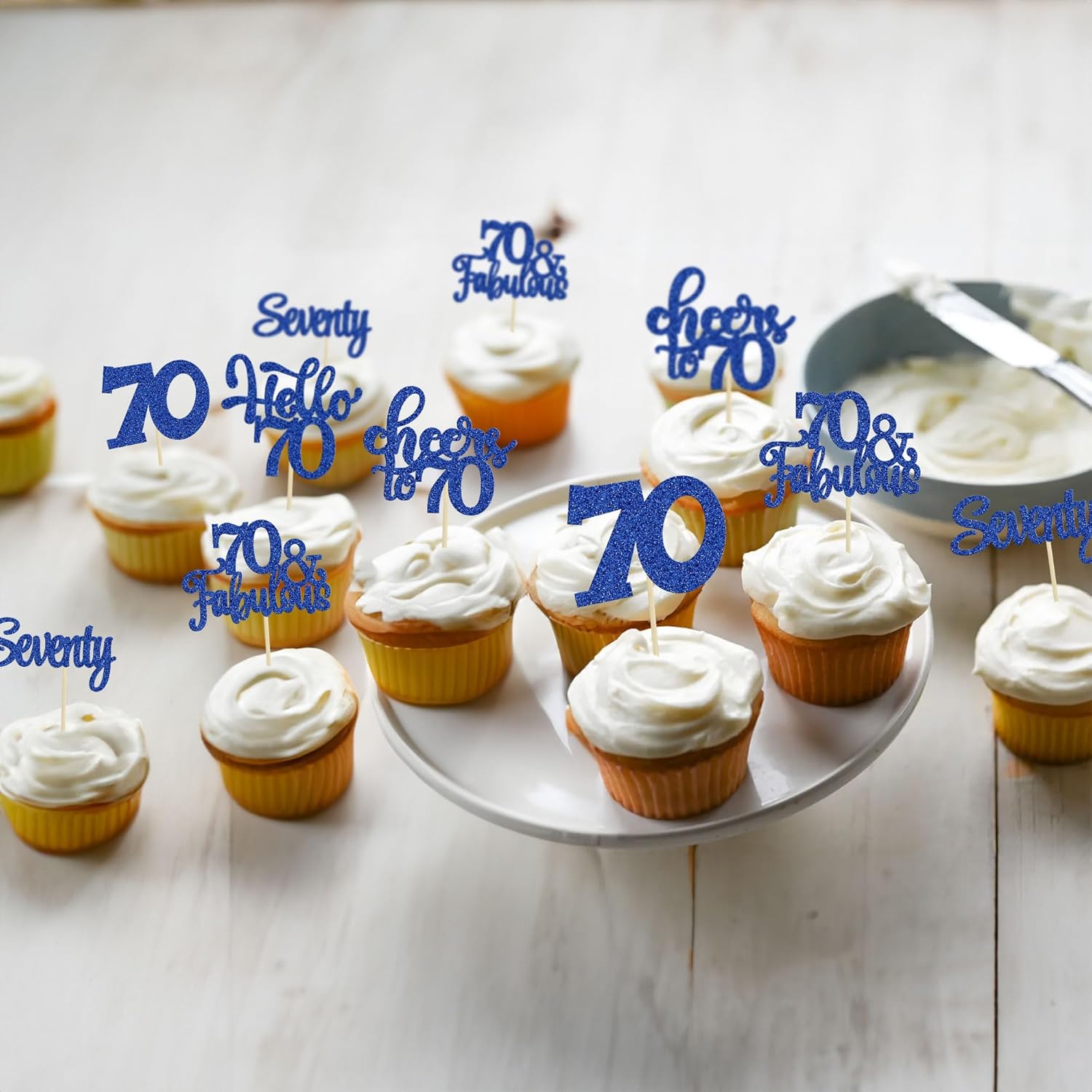• -These Happy 70th Birthday Cupcake Toppers are so cute and good for happy 70th birthday theme party, cheers to 70 years theme party, 70 fabulous theme party, happy 70th birthday anniversary theme party cake decorations. They can make your cupcake more attractive and bring the fun to your party. You can also apply them for ice cream, fruits, cookies and other desserts.