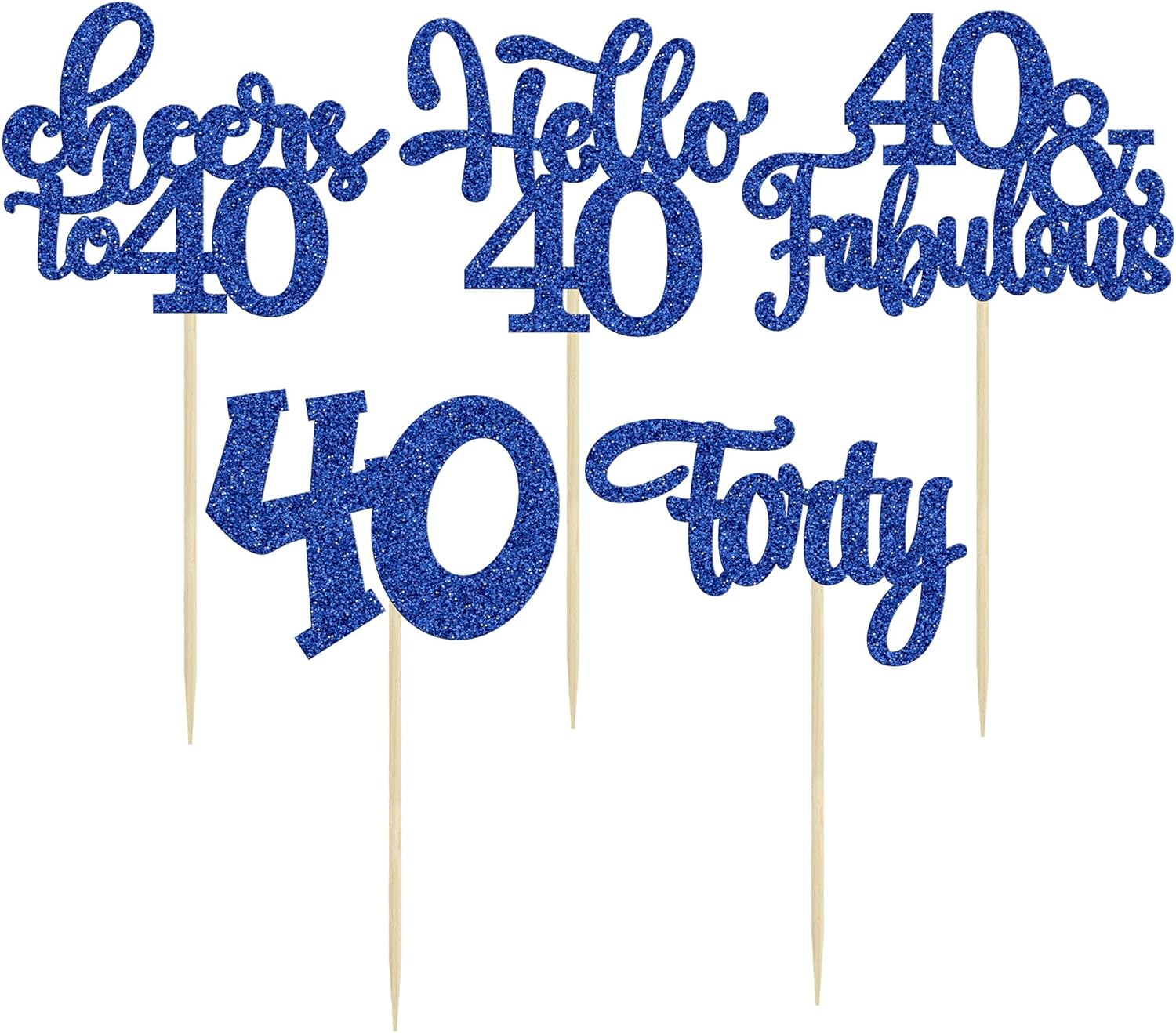 30pcs Happy 40th Birthday Cupcake Toppers - Deep Blue Glitter Forty Cheers to 40 Years Old Cupcake Picks for Anniversary Party Cake Decorations