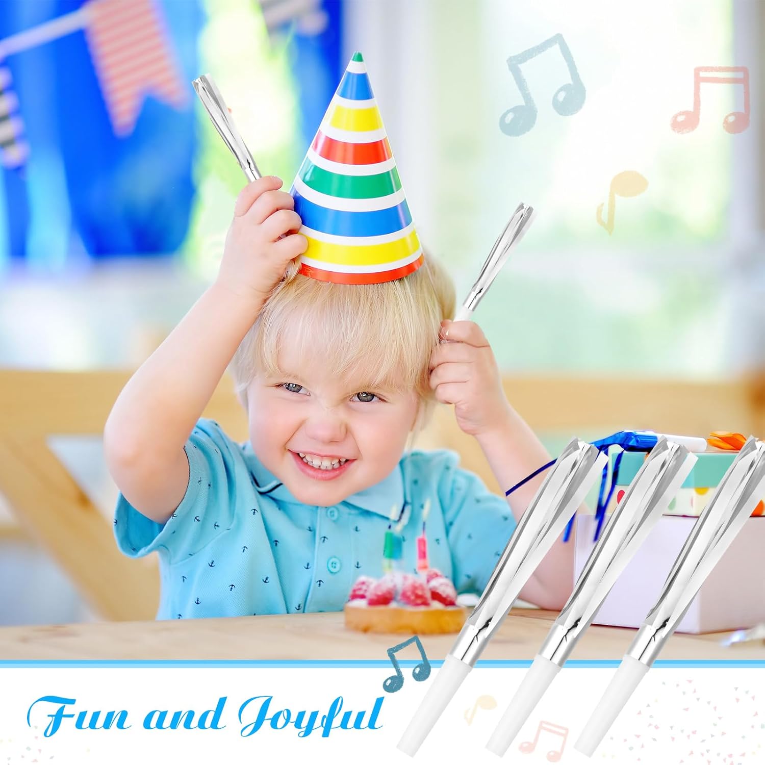 • Party favor for kids: The party noisemakers are approximately 16 cm/6.3 inches long, making them small and lightweight. They are easy to carry and store, which makes them suitable for most children to hold comfortably.