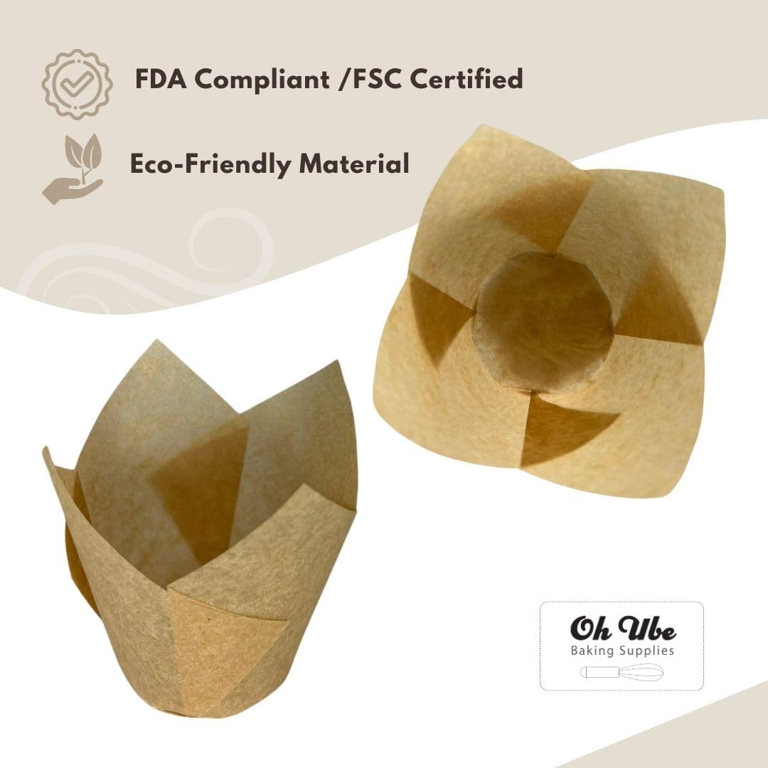 • Premium Quality: Elevate your baking with our high-quality tulip cupcake liners, made with all natural, 100% wood pulp. Premium Quality: Odorless, Non-toxic, Greaseproof, Heat-resistant up to 220° C / 428° F. Elevate your baking with our high-quality tulip baking liners.