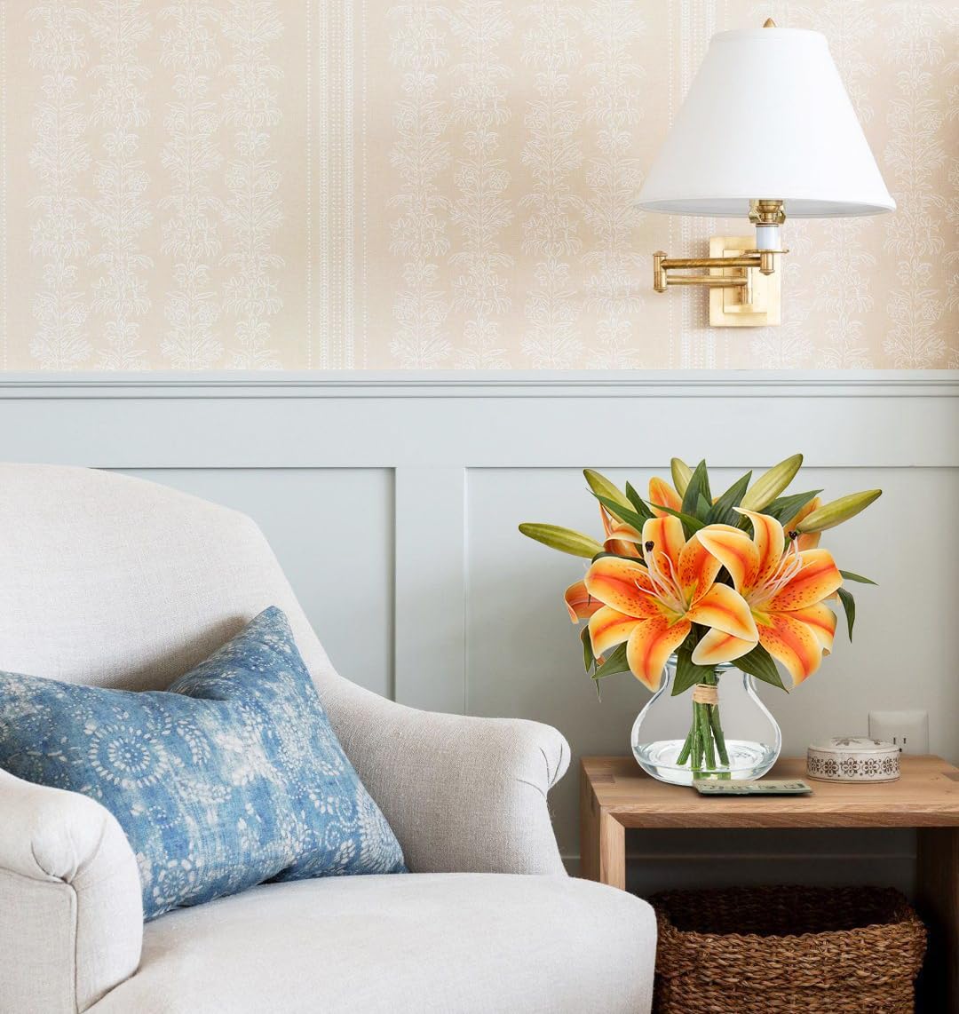 • 💐【Realistic & Elegant】Fall artificial tiger lily flowers with glass vase suits look so beautiful, unique craft design, brings different visual enjoyment to your home, create a romantic atmosphere, make you happy every day. Faux water on the vase adds to the pulchritude and realism. More realistic because of the details!