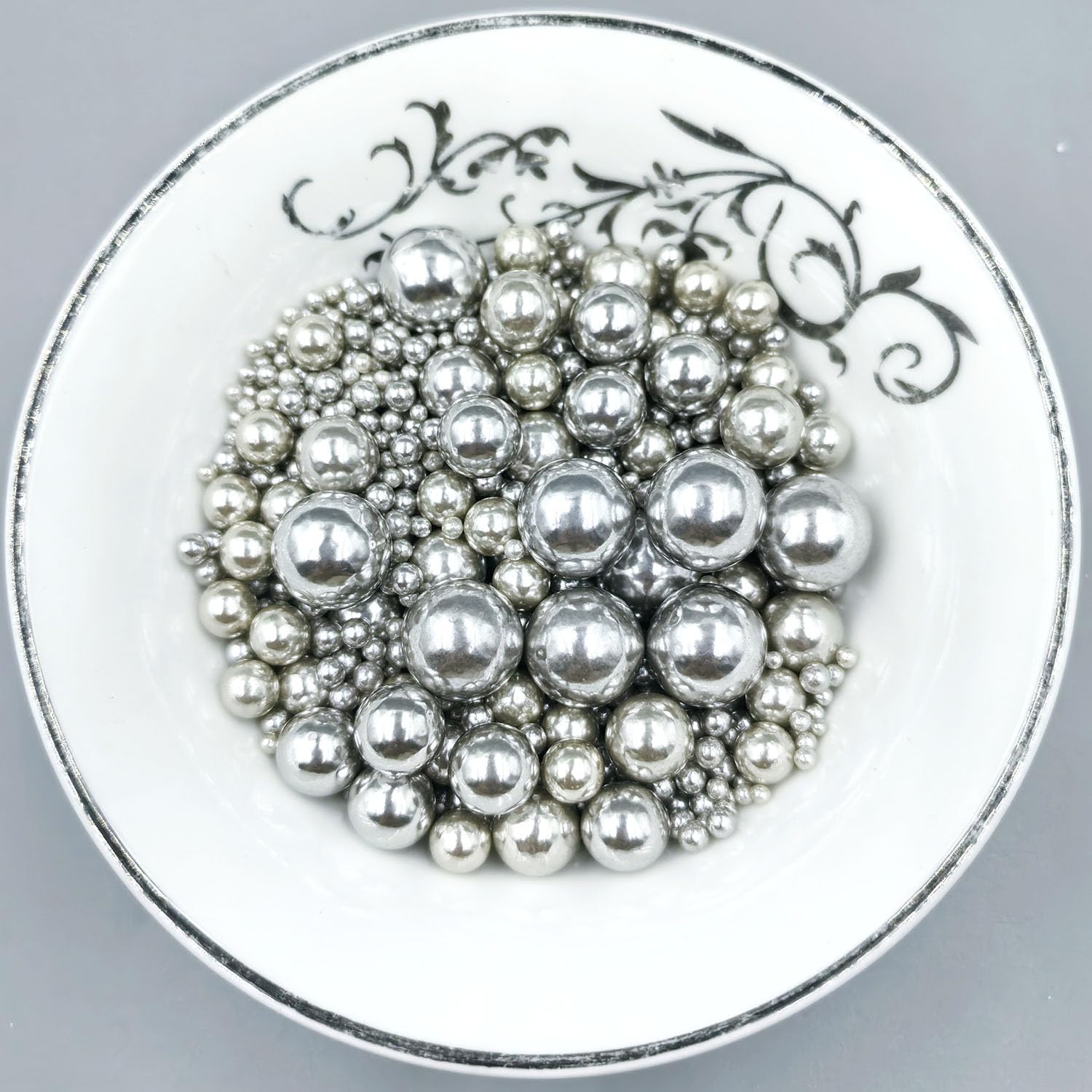 Edible Pearl Sugar Sprinkles Silver Candy Mixing Size Baking Edible Cake Decorations Cupcake Toppers Cookie Decorating Celebrations Wedding Valentines Easter Halloween Christmas Supplies 120g/ 4.23oz