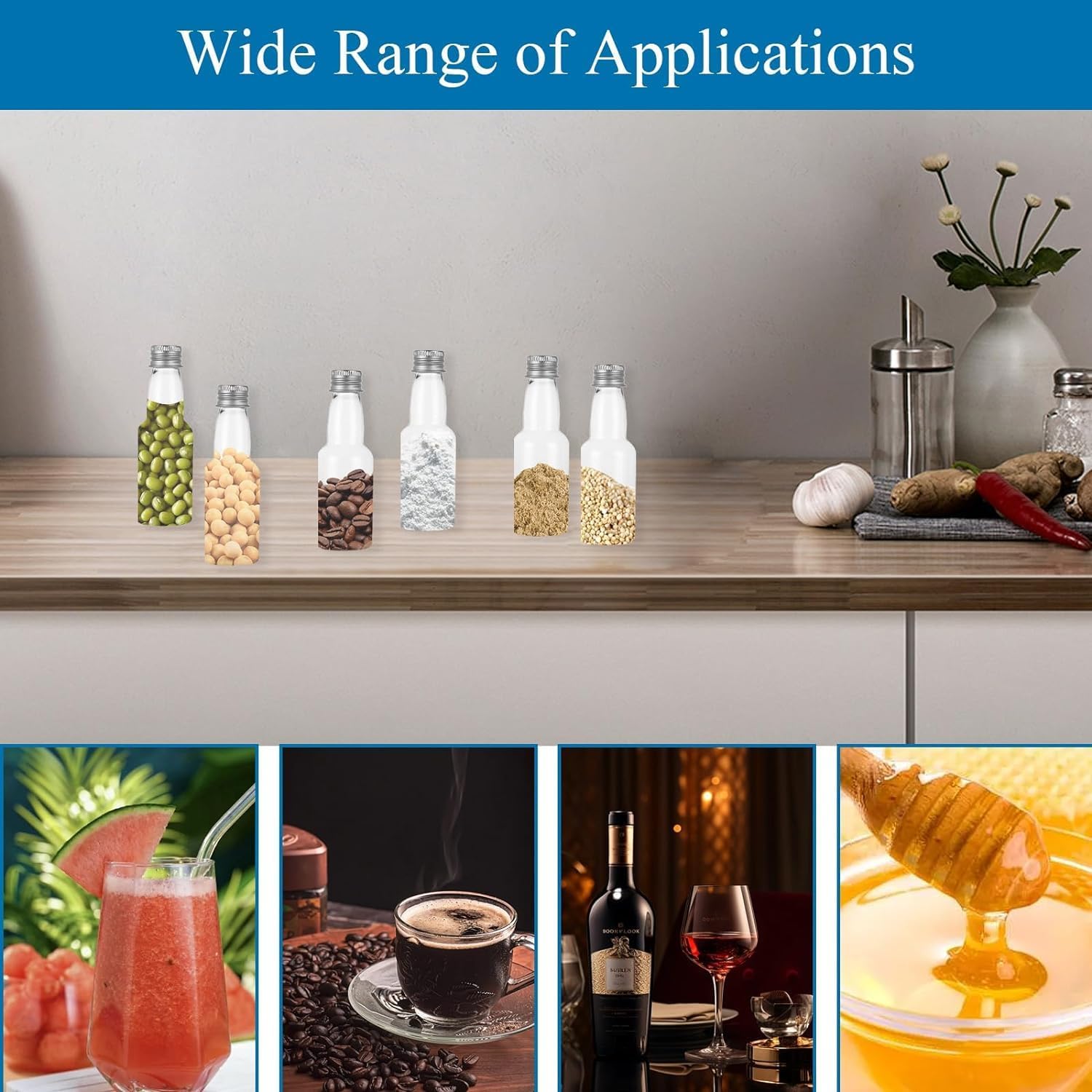 • 【Good Sealing】These small liquid bottles are equipped with aluminum screw caps that fit the bottle tightly to avoid liquid spillage, ensuring the food or liquid in the bottle will not leak and stain your clothes and keep your drinks fresh.