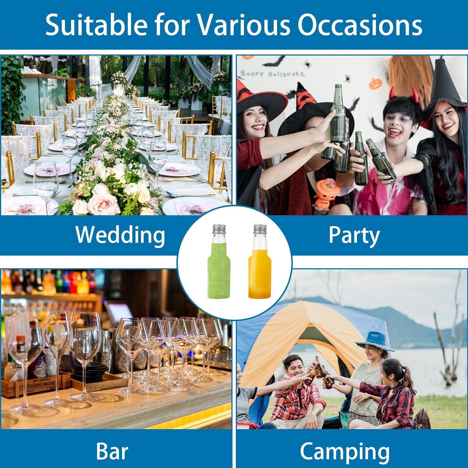 • 【Wide Application】Mini liquor bottles can store wine, wine, whiskey, essential oils, lotions, juices, condiments like hot sauce and vanilla extract as well as glitter, sand, mini beads, powdered paints and more. Mini champagne bottles are suitable for various occasions: weddings, parties, hotels, homes, restaurants, canteens, etc.