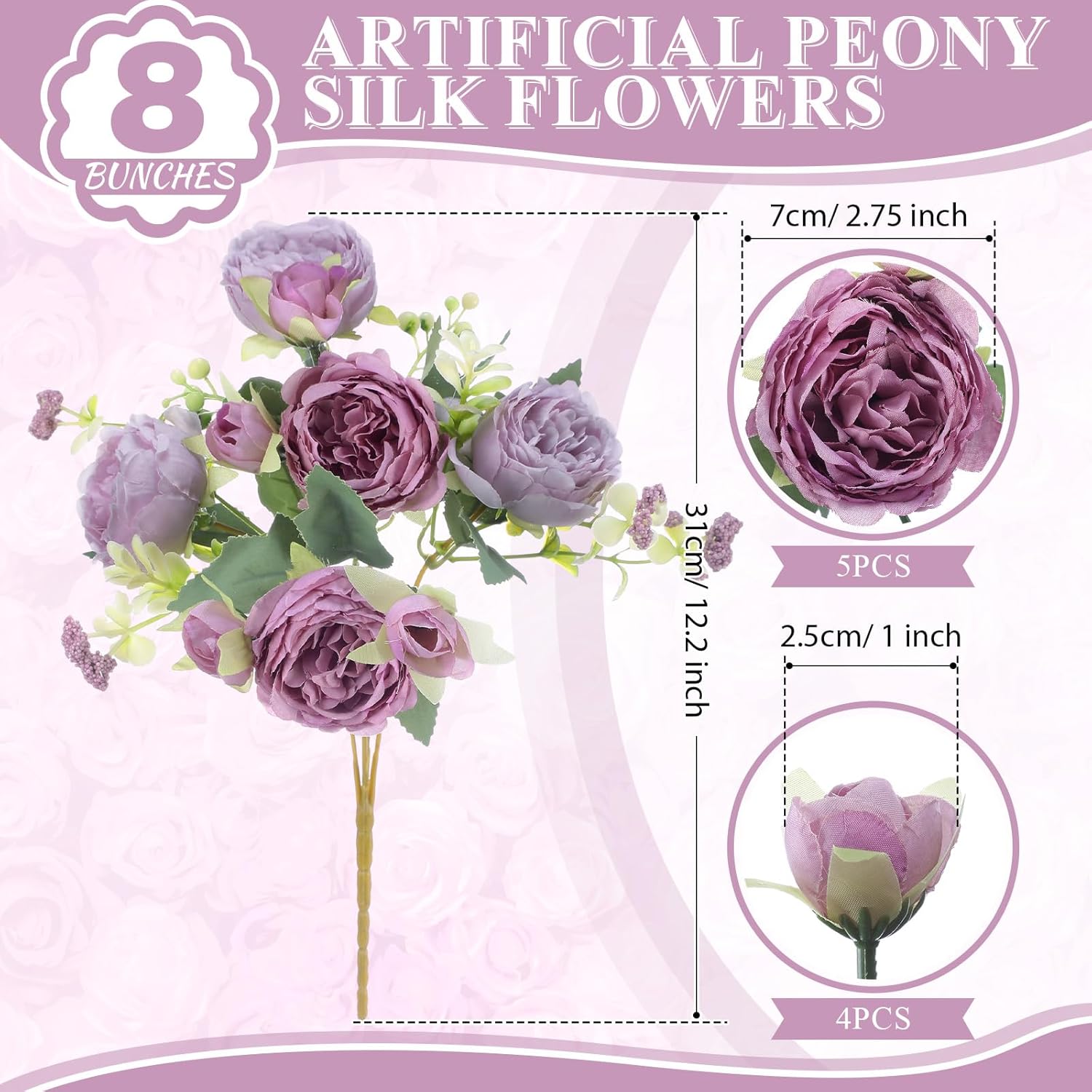 • Realistic Appearance: as you can see in the pictures, the silk peonies are pastel and sweet; The flowers and leaves are designed with clear textures, realistic and elegant, which will create a romantic and warm atmosphere for your house