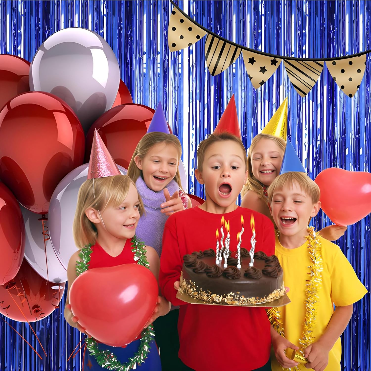 • Pair with other party decorations: Tinsel backdrop curtain can be paired with LED lights, balloons, banners, wreath, garlands, swirl streamer, tissue paper pom poms.