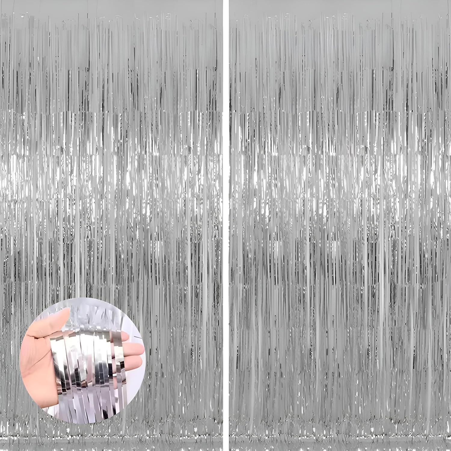 • 2 Pack foil fringe tinsel backdrops: each measuring a whopping 3.3 ft x 8.3 ft.Long enough for indoor or outdoor parties. Also can be cut in suitable length for your birthdays Party decorations These backdrops are perfect for creating stunning party decorations, event backdrops, and photo booths that will leave your guests in awe.
