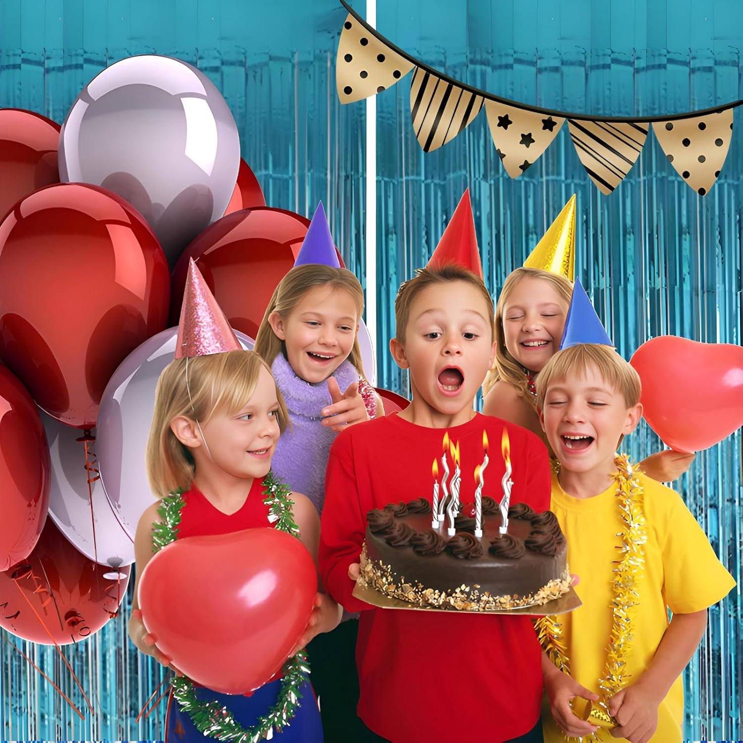 • Pair with other party decorations: Tinsel backdrop curtain can be paired with LED lights, balloons, banners, wreath, garlands, swirl streamer, tissue paper pom poms.