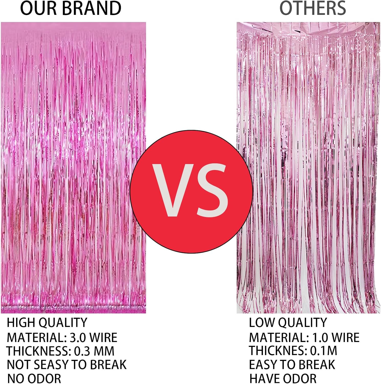 • 2 Pack foil fringe tinsel backdrops: each measuring a whopping 3.3 ft x 8.3 ft.Long enough for indoor or outdoor parties. Also can be cut in suitable length for your birthdays Party decorations These backdrops are perfect for creating stunning party decorations, event backdrops, and photo booths that will leave your guests in awe.
