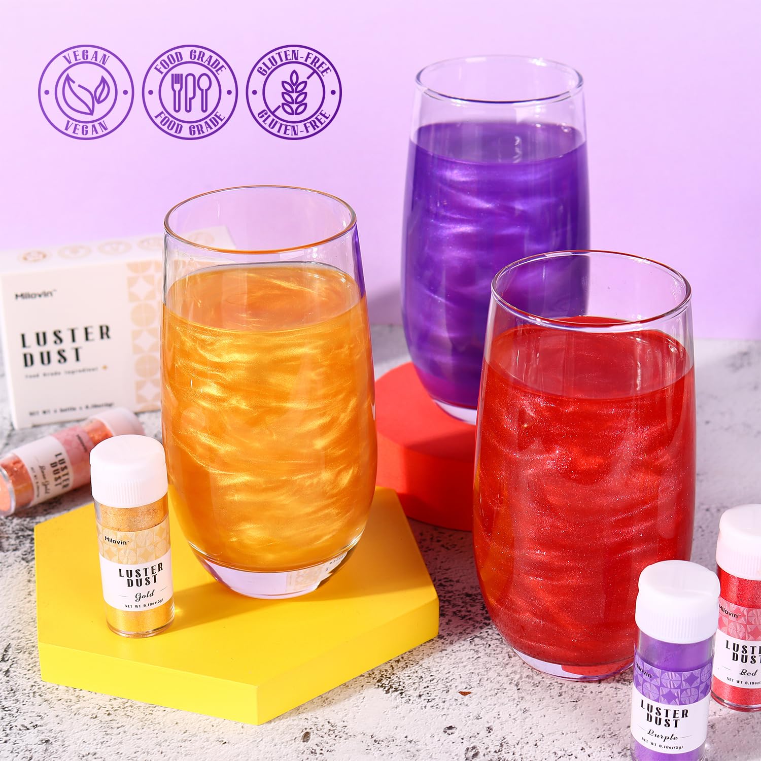 • Edible Glitter for Cocktails: Including gold edible glitter, rose gold glitter, purple edible glitter, and red edible glitter. Made of food-grade mica powder and food coloring. Odorless, Tasteless, Vegan, nut-free, gluten-free